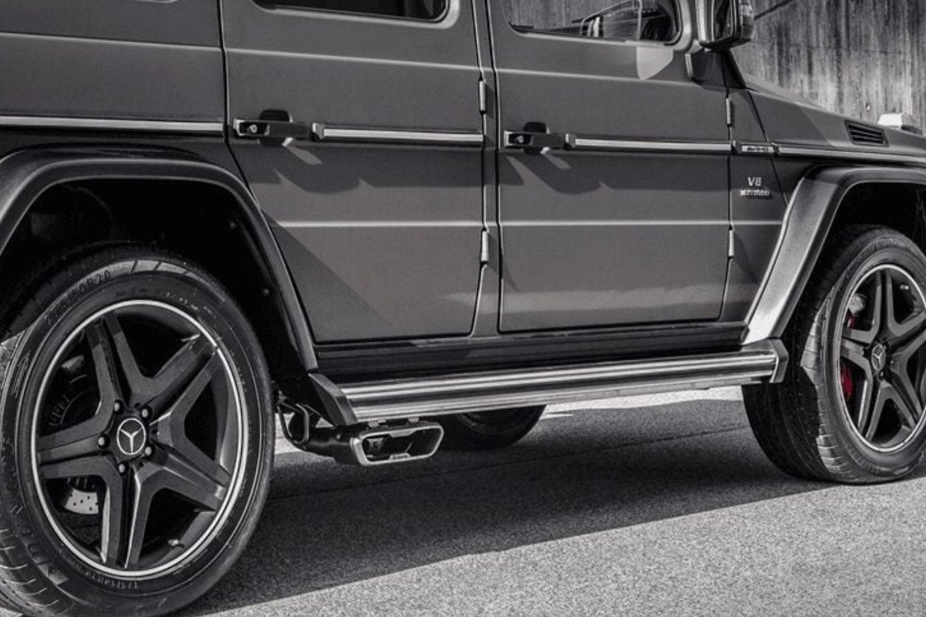 Where this kit stands apart is in its inclusion of the Akrapovič Sound Kit as standard equipment. Owners can toggle between quiet and sport modes from the cockpit, either with a dedicated controller or through the Akrapovič smartphone app. This gives the G500 and G550 a level of driver control usually reserved for higher-performance models. Installing the system requires specific Mercedes stainless steel packages or step boards, along with a mandatory fitting kit, but once in place, it transforms the character of the vehicle.