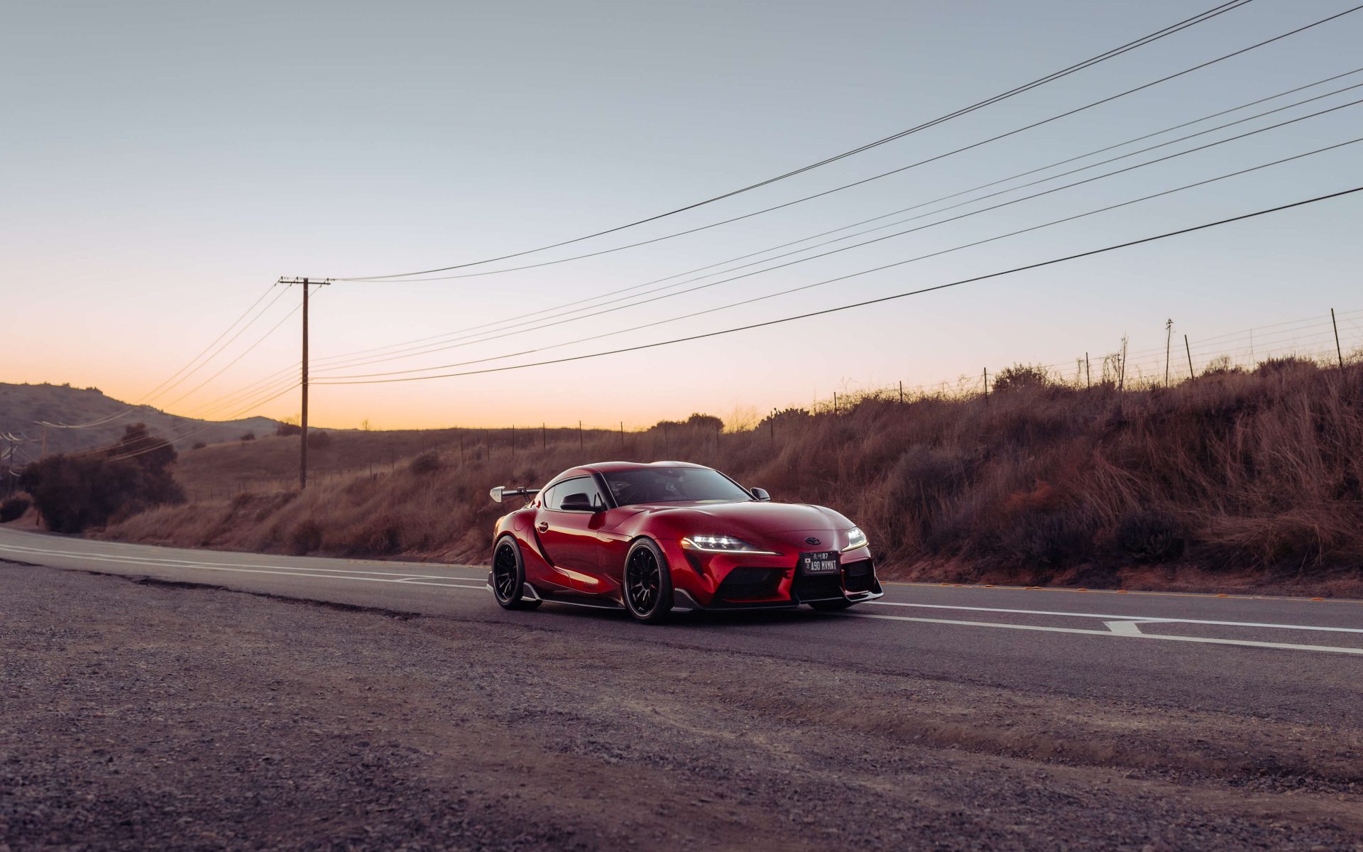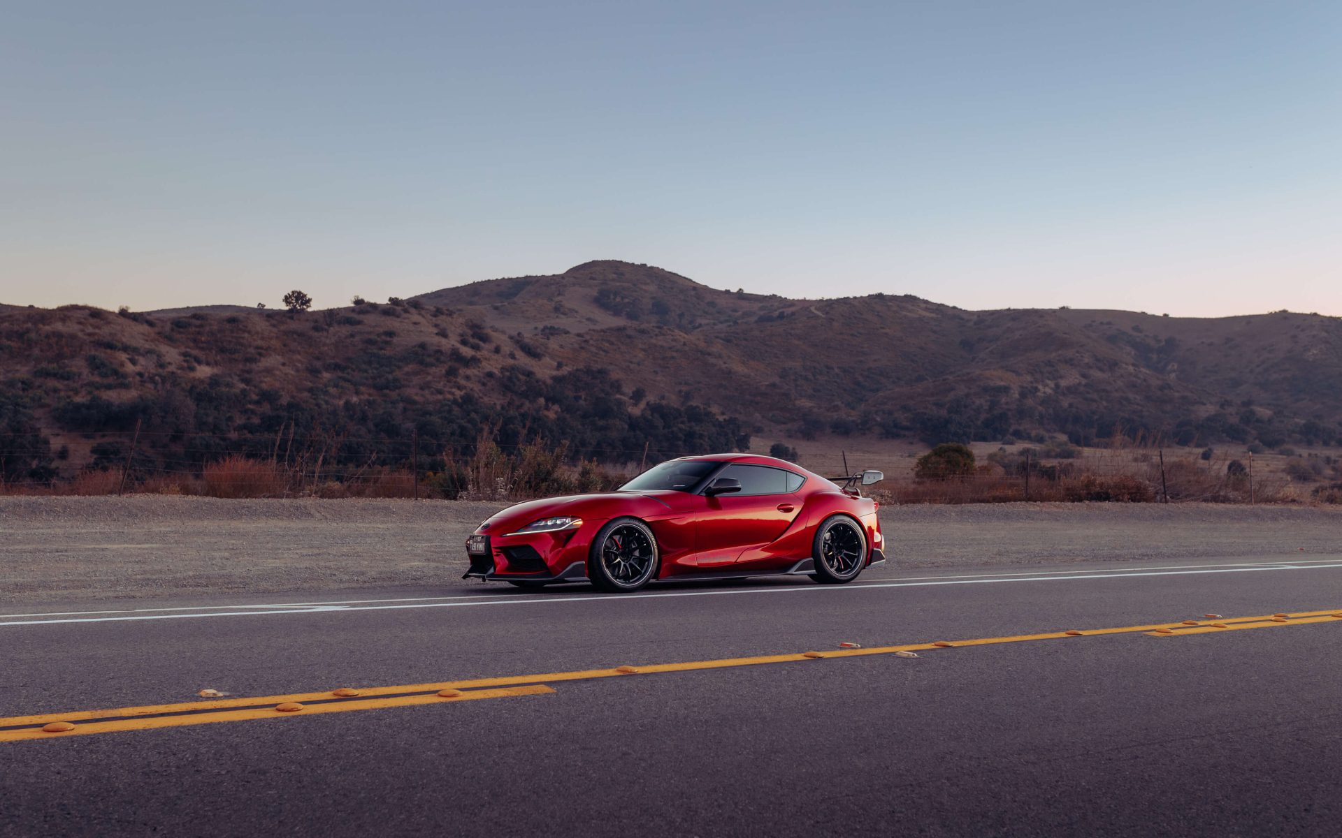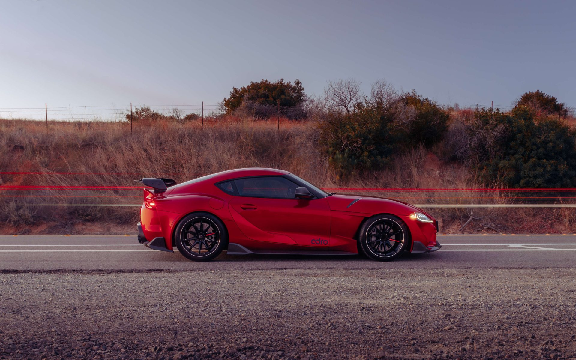 Monza Red Toyota A90 Supra – ADRO Carbon Fiber and VOLK Wheels