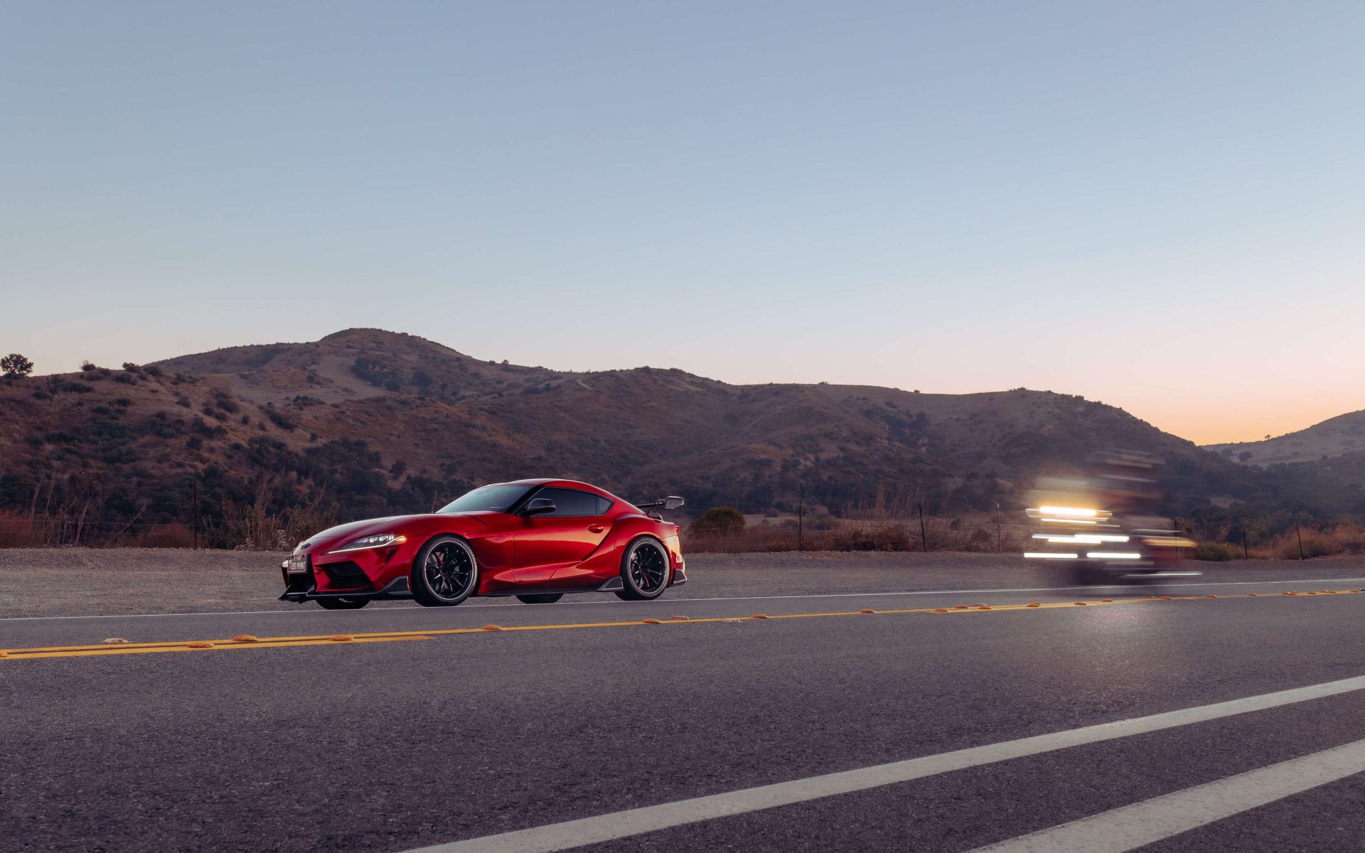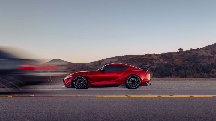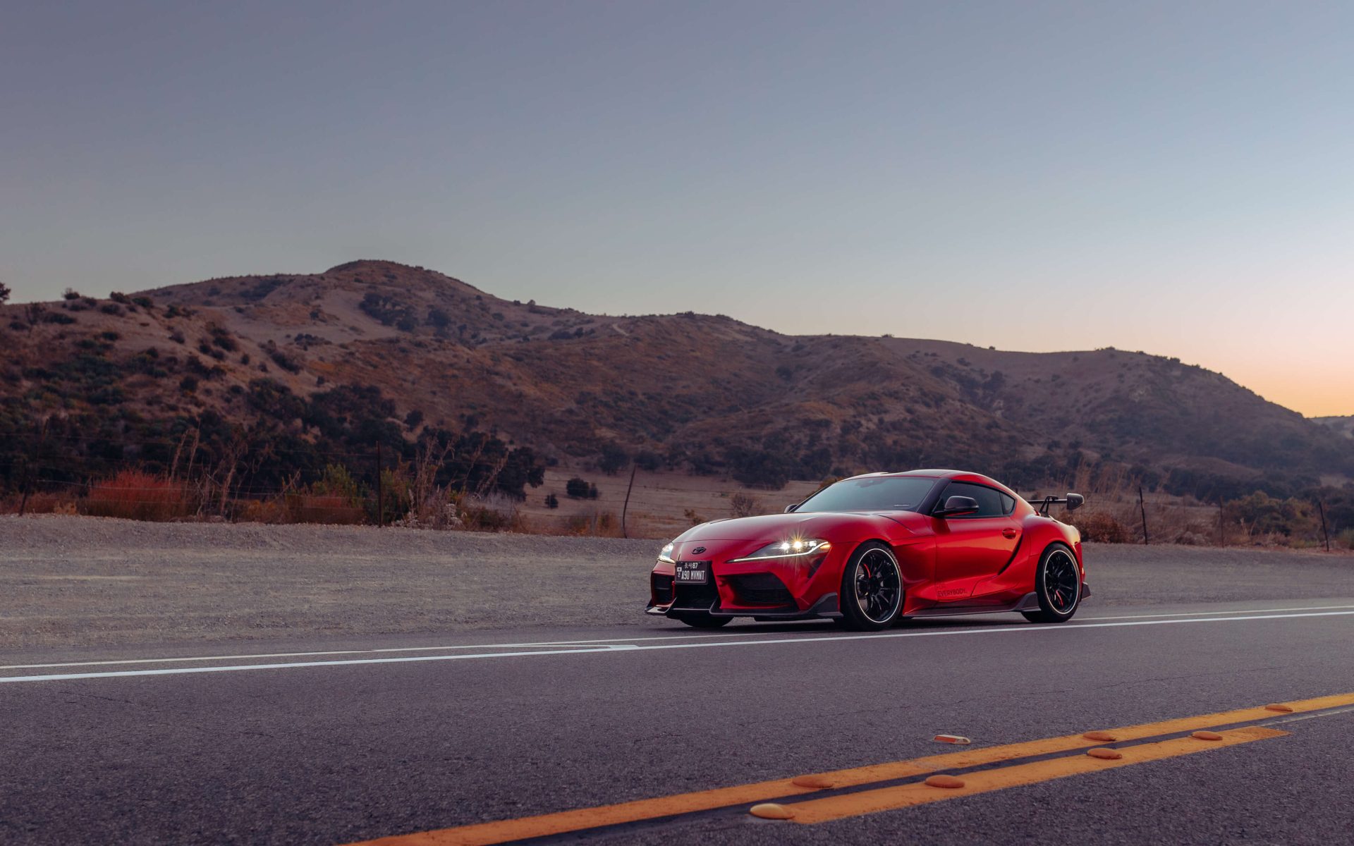 Monza Red Toyota A90 Supra – ADRO Carbon Fiber and VOLK Wheels