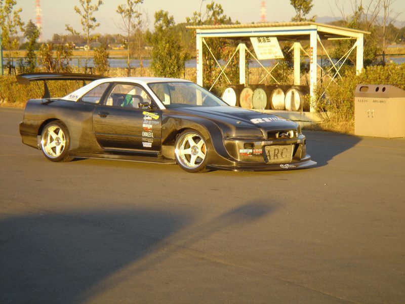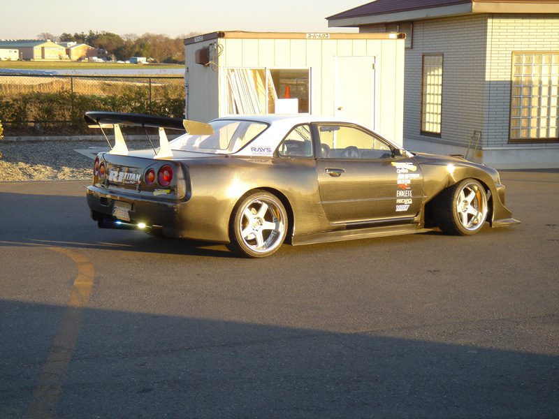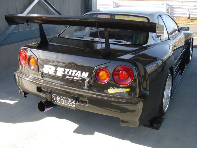 Featured in Option Magazine and in the Gran Turismo game, this is the Amuse Carbon R. Amuse utilized dry carbon components to shed all extra weight off of this car. Mr Tanabe told Option magazine that “It’s unmistaken that the RB26DETT is one of the greatest pieces of machinery ever built. However, the chassis that carries one of Nissan’s most coveted creation weighs in at over 3300 pounds; it serves as a great opportunity to shave some weight. By doing so, 120% of the potential of the RB26 can be extracted because of the ultra lightweight GT-R body. This is the dream machine that I have been lusting for a long time.” Carbon panels were only the start to this cars weight saving efforts as the 4WD was removed to make the car rear wheel drive and any engine parts that could be shaved down was. All of these things combined brought the car’s weight to an unbelievable 2,400 pounds! (A stock R34 weighs 3,400 lbs) Do not be fooled, this car was not meant to be a light weight race car. One look in to the interior shows a highly tuned street car look. Despite the extreme exterior driven by weight savings, the engine is very modestly tuned. The goal Mr. Tanabe stated for this car was to see how fast this GT-R can be with a moderately tuned engine inside an extremely light chassis.