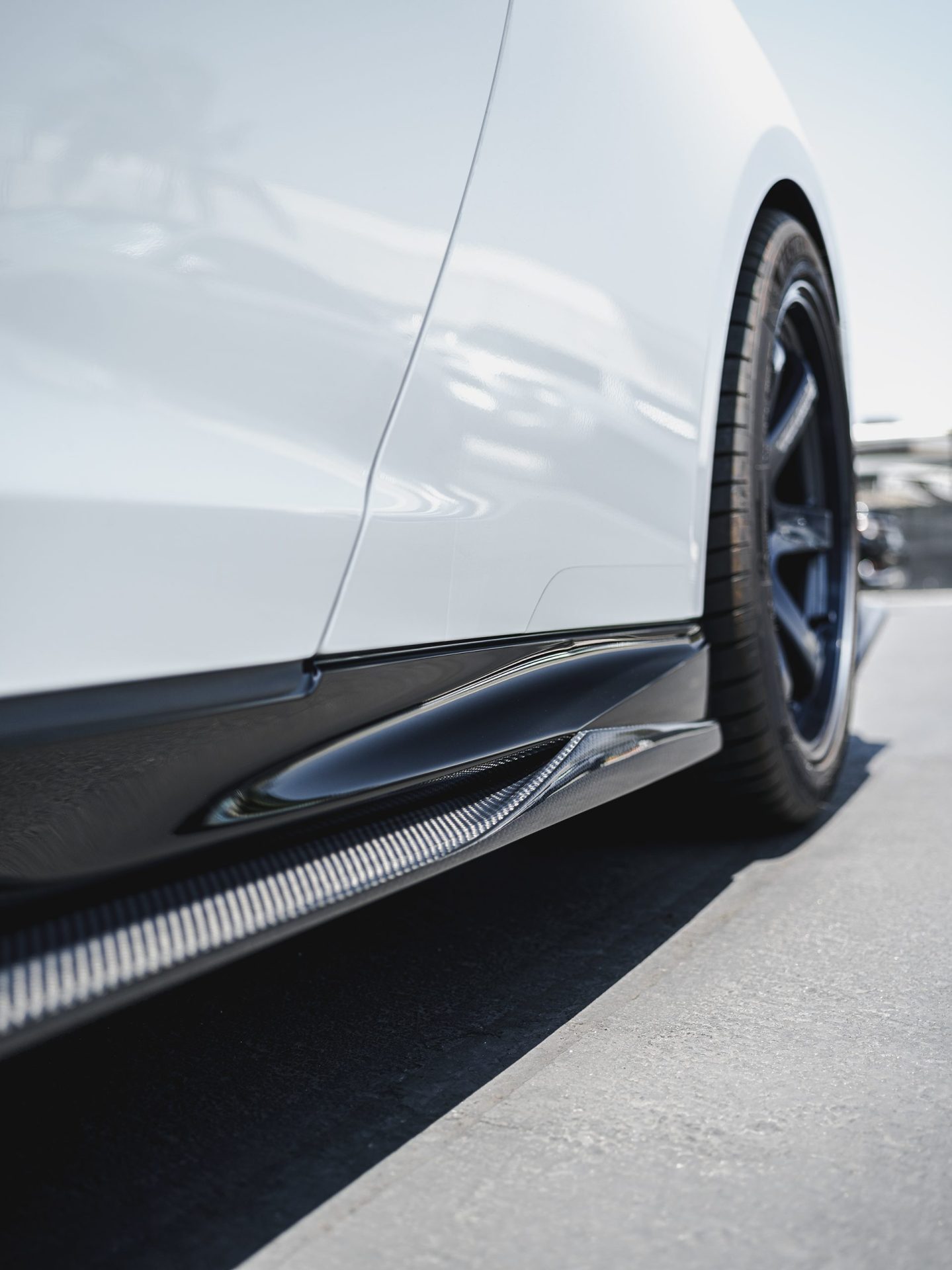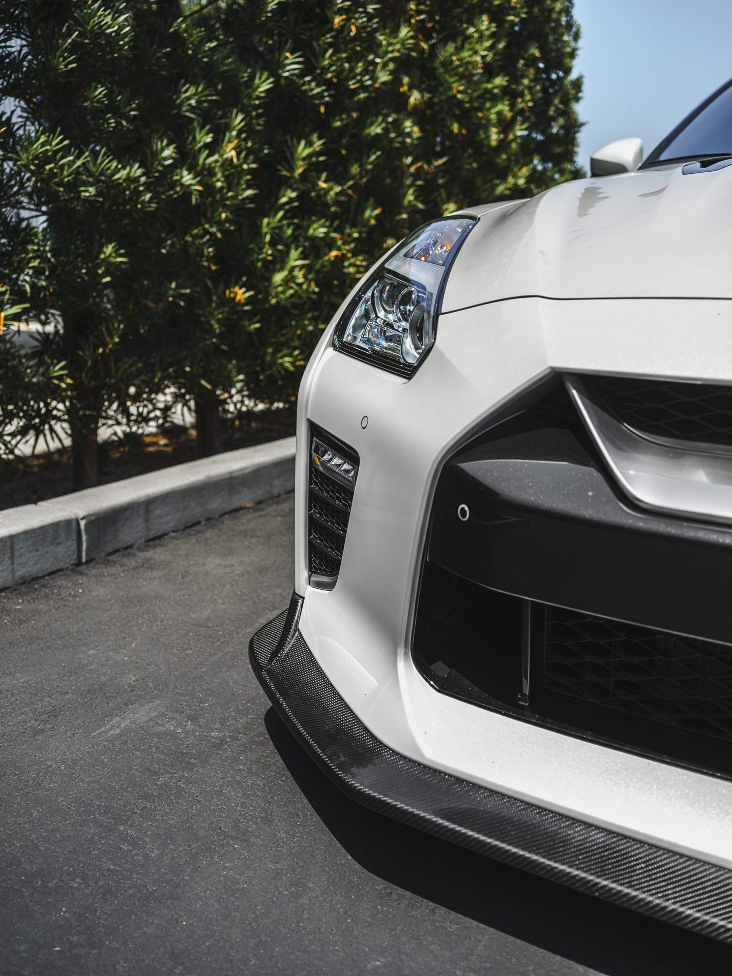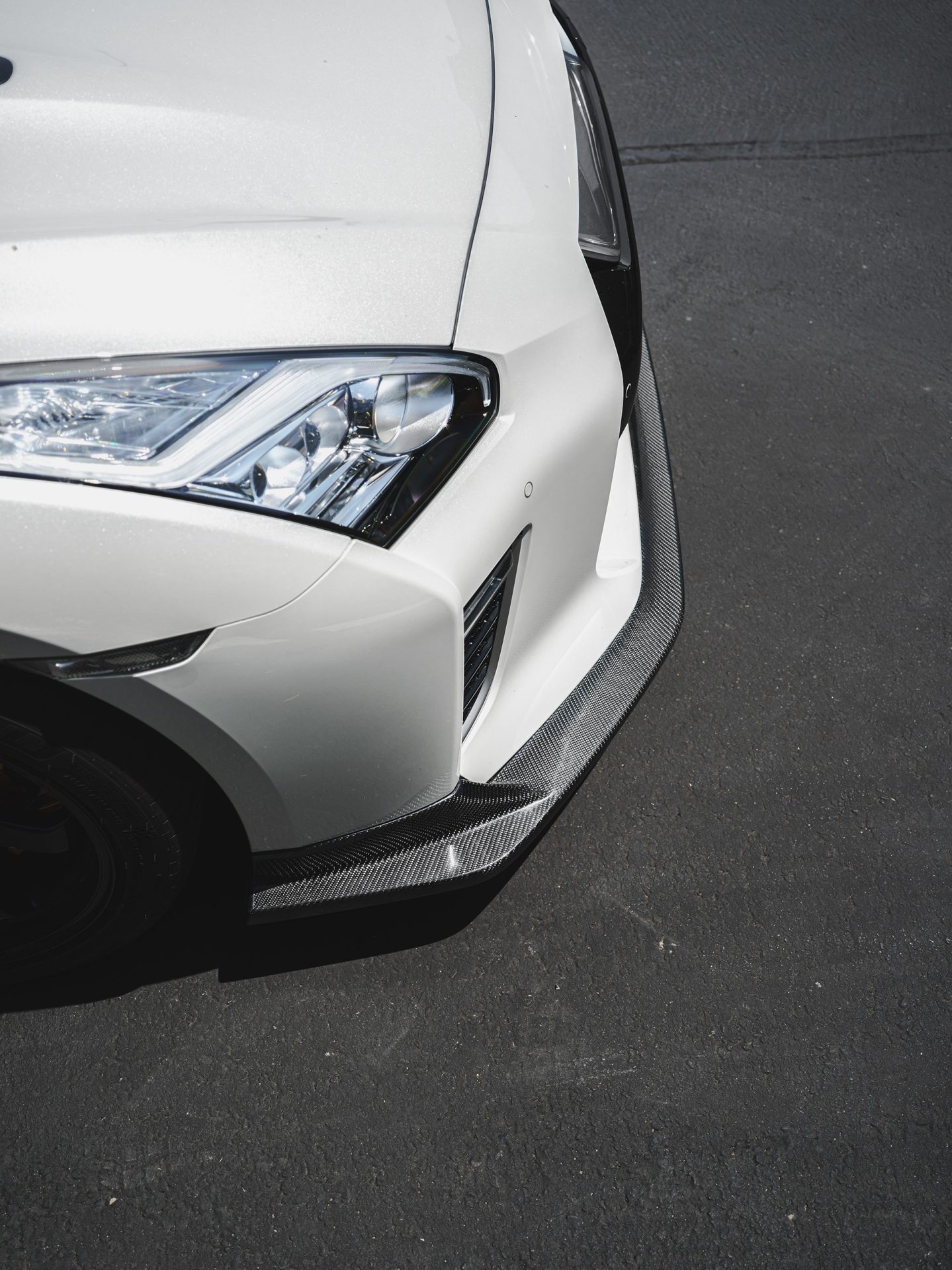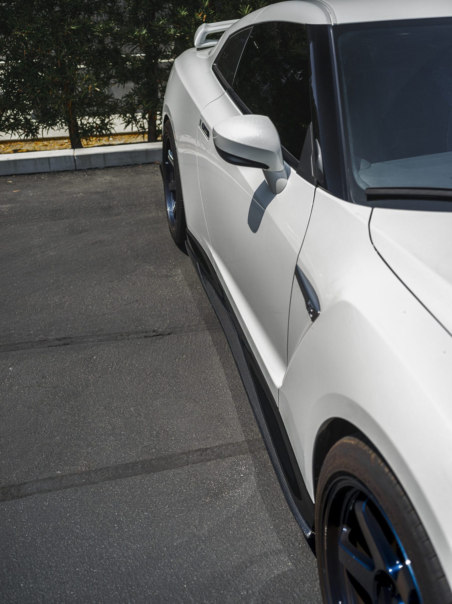 White Nissan R35 GT-R – Varis Carbon Fiber Front Lip And Side Skirts, VOLK TE37 Wheels
