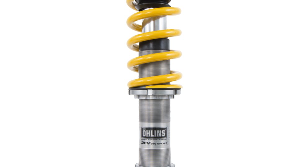 The Öhlins Road & Track suspension for the 1998-2012 Porsche Boxster, Cayman (986/987) gives drivers a true racing experience without compromising comfort during daily commutes. Our unique Dual Flow Valve (DFV) technology allows drivers to quickly change the stiffness of the shock absorber. When arriving to the racetrack, turn the gold knob on the damper clockwise to set it in race mode. This action changes all four areas of the damper: high & low speed compression and high & low speed rebound.