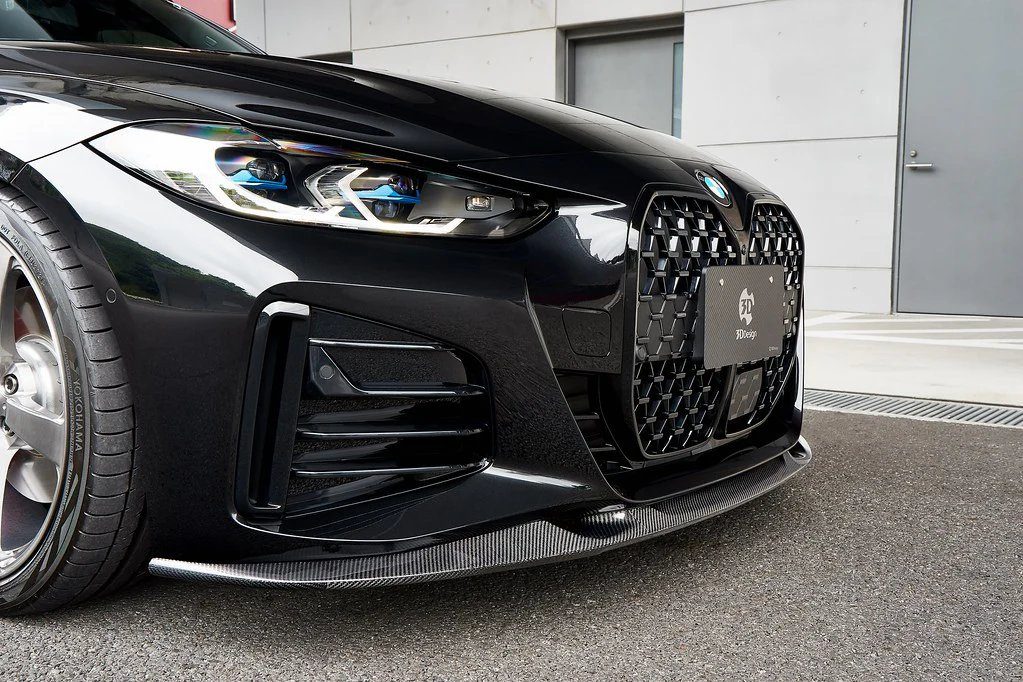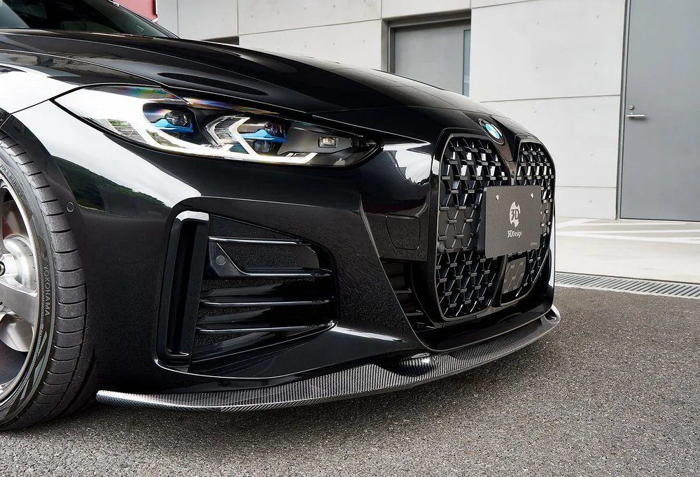 The 3DDesign Carbon Front Lip for G26 BMW 4 Series and i4 M Sport enhances aerodynamics and style with lightweight dry carbon fiber construction, precise OEM fitment, and a bold motorsport-inspired design handcrafted in Japan.