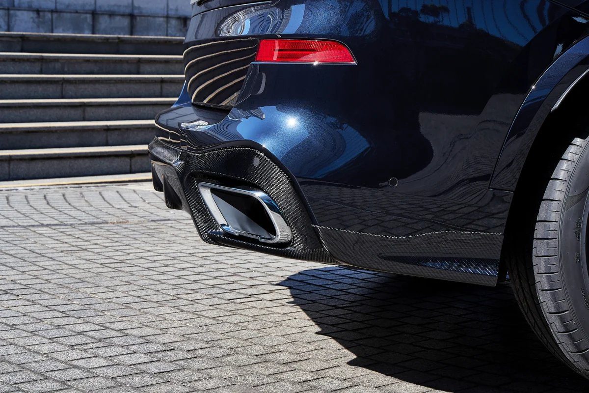 The 3DDesign Carbon Rear Diffuser Package for the pre-facelift G05 BMW X5 delivers a complete, premium rear-end transformation with a cohesive blend of performance styling and precision engineering. Featuring a full carbon fiber center diffuser paired with matching side extensions, this package enhances the SUV’s width, depth, and overall presence with sharp, sculpted lines that maintain a factory-level fit. Lightweight yet robust, each component is crafted to flow naturally with the X5’s design while adding a bold, motorsport-inspired aesthetic. The result is a refined but aggressive upgrade that elevates the character of the X5 without compromising everyday practicality.