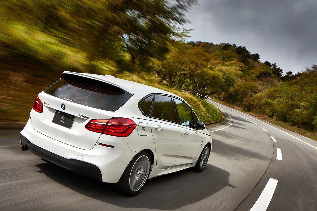 The 3DDesign Roof Spoiler for the F45 BMW 2 Series Active Tourer enhances aerodynamics and style with a sleek urethane design, seamless factory fit, and subtle sporty look that elevates the vehicle’s overall presence.