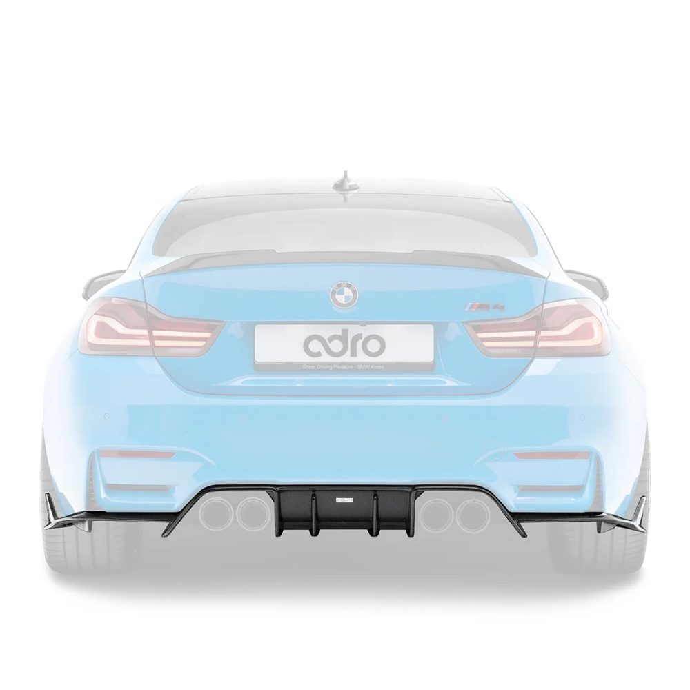 Constructed entirely of hand-crafted carbon fiber, the ADRO diffuser is compatible with original OEM BMW M3 or M4 rear bumpers without any fitment gaps. The distinguishing feature of this diffuser is its built-in aero canards, along with its 100% wet carbon fiber build. The design includes exhaust cutouts that can accommodate both original OEM and the majority of aftermarket exhaust tips. The usage of this diffuser kit significantly alters the rear appearance of the BMW M3 or M4. Compared to many other diffusers available in the market, its installation is quite straightforward.