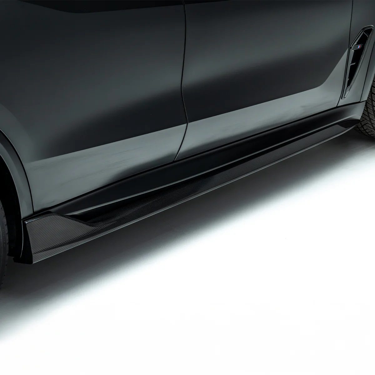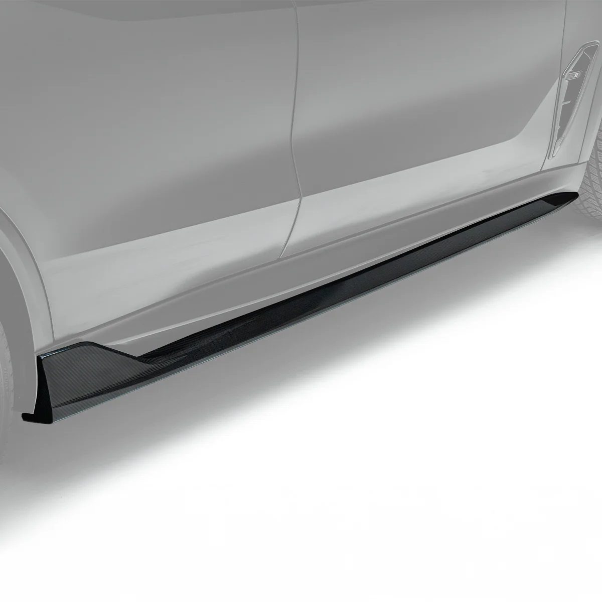 Elevate the aesthetics and functionality of your BMW F95 X5 M with ADRO’s Carbon Side Skirts, meticulously crafted from premium dry pre-preg carbon fiber. These side skirts are not only designed to amplify the SUV’s bold styling but are also optimized for aerodynamic performance. With CFD-tested enhancements, they improve airflow around the vehicle, resulting in increased downforce, reduced drag, and enhanced stability at high speeds. The side skirts boast a seamless integration with the X5 M’s body lines, enhancing its sleek and aggressive aesthetic while commanding attention on the road. Constructed from strong, lightweight carbon fiber, these side skirts ensure durability without adding unnecessary weight, featuring precision fitment that allows for easy installation without any modifications. This upgrade is ideal for X5 M owners looking to boost both performance and presence with a distinct, high-quality addition.