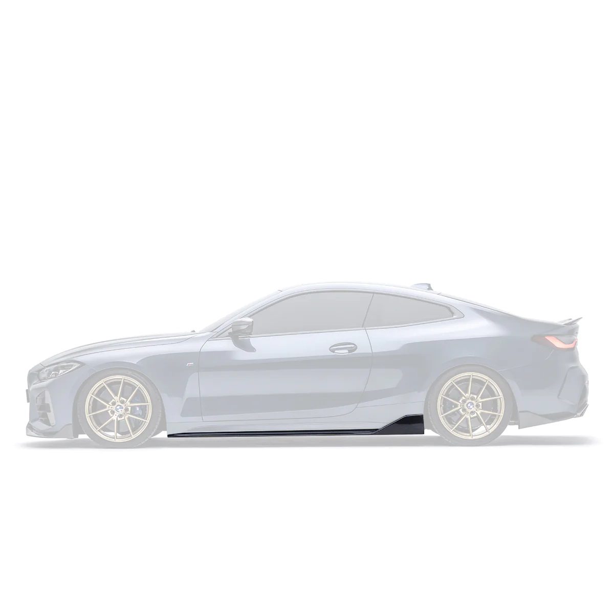 Improve the visual appeal of their BMW G22 M440i by incorporating the Carbon Fiber Side Skirts. They are meticulously crafted from high-grade carbon fiber and coated with a UV-resistant clear protective layer to ward off discoloration. These durable, top-notch side skirts are designed to provide ideal performance while withstanding long-term use. By choosing these side skirts, owners can customize the appearance of their BMW G22 M440i, making it the focal point of any neighborhood.