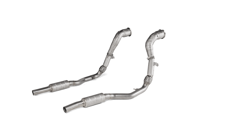 This is an optional part as an upgrade to the Evolution Line Titanium Exhaust System for further tuning. The downpipes are high-quality stainless steel, containing sporty 200 cpsi catalytic converters, insulated to prevent overheating any parts around them. The stainless-steel link pipes have custom-made flex tubes, with insulation where they connect to the downpipes. When fitted with the Evolution Line Titanium Exhaust System, the entire configuration offers a unique acoustic experience.