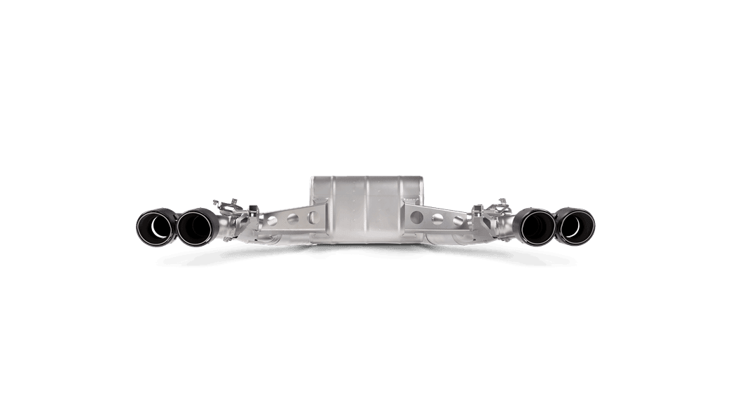 Through extensive testing and development, the Akrapovič sound engineers have coaxed a deep, sporty, higher-frequency V8 sound from the car’s turbo engine, more akin to that of a muscle car, while keeping it smooth and eliminating any drone that might hamper the enjoyment. The full titanium exhaust system is finished with two sets of carbon-fiber / titanium tailpipes coming from a central muffler layout featuring two valves, one located on either side of the muffler. The housings are cast in-house in the Akrapovič foundry, and there is a cast collector on the link pipe, where gases from both sides of the engine mix, all designed to create a perfect sound.