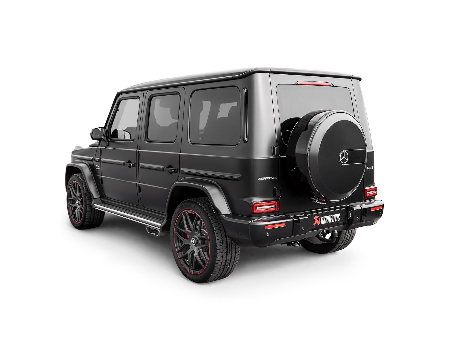 Akrapovic’s titanium Evolution Line for the Mercedes-AMG G 63 reduces weight by 45%, boosts power and torque, and delivers a deeper, sportier exhaust note with included sound control.
