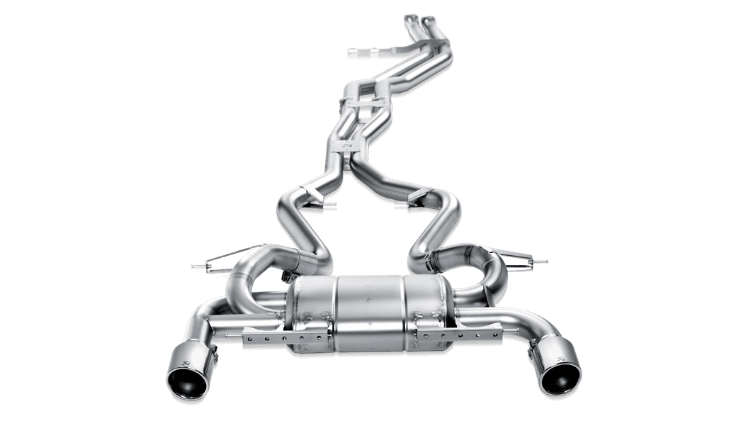 There are also noticeable refinements to the entire RPM range and the power is delivered homogeneously. Reducing back pressure brings about improvements in throttle and turbine response. Evolution performance exhaust systems sound very sporty and reflect the formidable nature of the powerful six-pot engine. The look is completed with a set of two exquisite tailpipes in titanium.