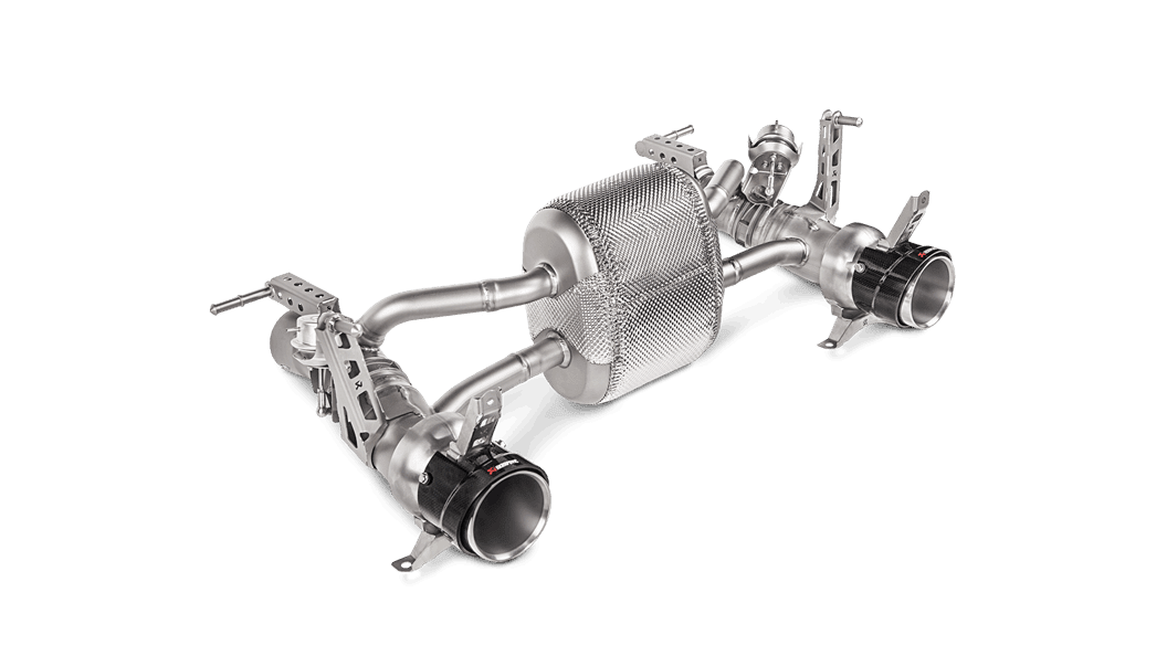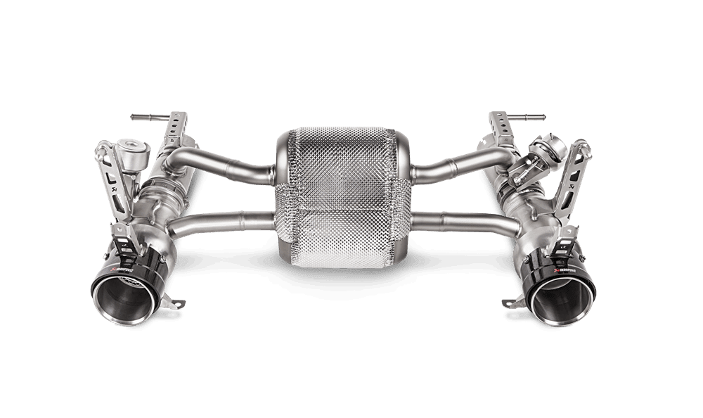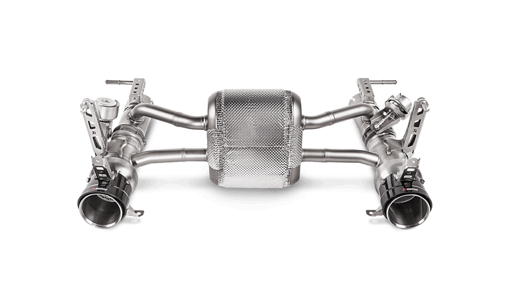 It is finished with a carbon-fiber outer sleeve on the tailpipes. Especially when combining the Slip-On system with the optional Link Pipes with Cats or without Cats, it emphasizes the character of the Ferrari V8 (flat-crank engine) sound with the unique Akrapovič note.