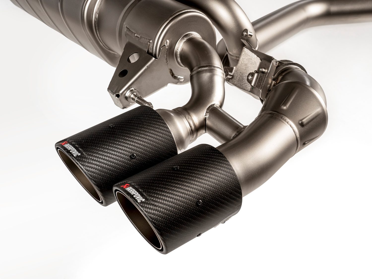 This exhaust system is constructed with exquisite craftsmanship, featuring two smoothly fashioned carbon-fiber tailpipes in conjunction with polished titanium pipes. It is a manifestation of artistic expertise, endowed as well with an auditory accompaniment favorably corresponding to the car’s vigor; finely calibrated to generate a one-of-a-kind acoustical hue and Akrapovič’s vaunted signature sound.