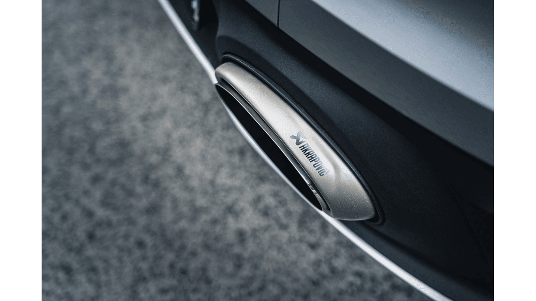 Taking design to new limits, the Slip-On Race Line Titanium Exhaust System is beautifully finished with unique tailpipes to showcase a variety of surfaces, emphasizing the latest in exhaust technology and production. From the outer part, which is sandblasted and coated for increased durability and longevity, and incorporates a laser-engraved Akrapovič logo, to the inner tubing, which is polished on the outside and has a black-coated interior, all set within the bumper inserts, this system fully complements the lines of the car.