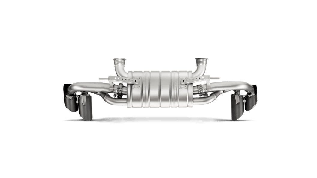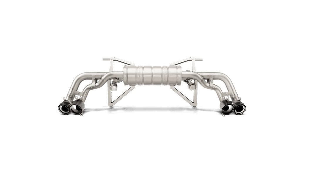 Building on the success and expertise acquired from developing the Slip-On Line exhaust system for the Lamborghini Gallardo, Akrapovič has taken the Lamborghini Huracán to new heights with their latest system. Expertly crafted from a high-grade titanium alloy for significant weight reduction and enhanced handling, the Slip-On Line features larger main pipes and a specially engineered X-part (for cross-flow) in the muffler to minimize back-pressure, resulting in increased power and torque across the entire rev range. The naturally aspirated V10 engine’s distinct growl is amplified as performance improves, delivering a captivating sound without intrusive cabin noise. When operating at lower revs or cruising, closed valves produce a deeper, sharper exhaust note. As the revs increase and the valves open, the full, exhilarating engine soundtrack is unleashed, signifying the Huracán’s serious intent. This exceptional system is flawlessly completed with four carbon fiber tailpipes, ensuring that the exhaust’s appearance is as impressive as its sound and performance.