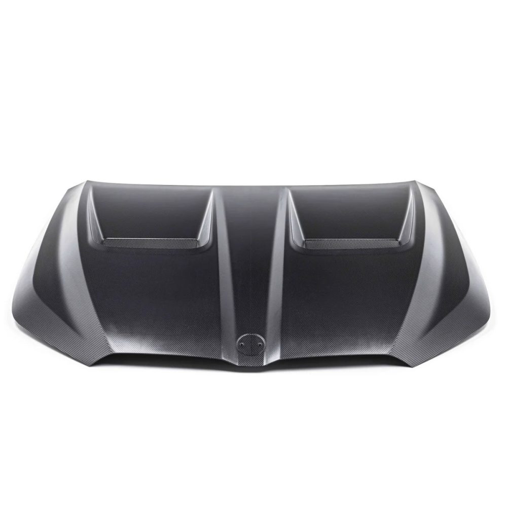 Alpha-N’s carbon hood for the G9X M5, made from pre-preg carbon fiber with integrated skeletal bracing, offers lightweight durability. Its new design, inspired by the M4 GT3, features larger, optimized air outlets for improved thermal management and aerodynamics.