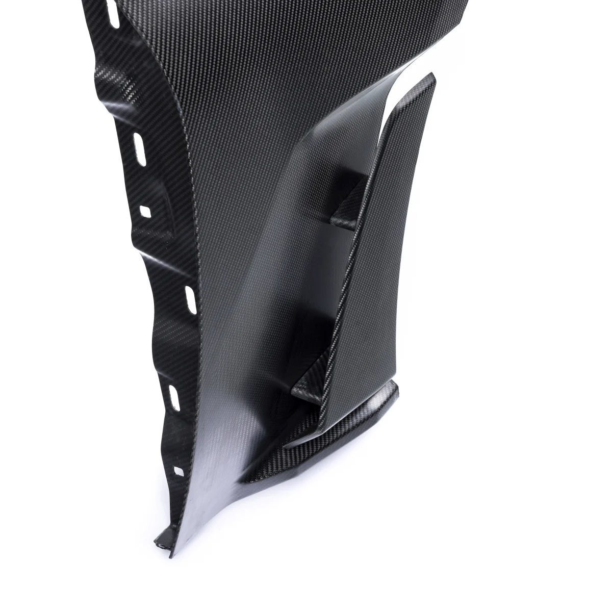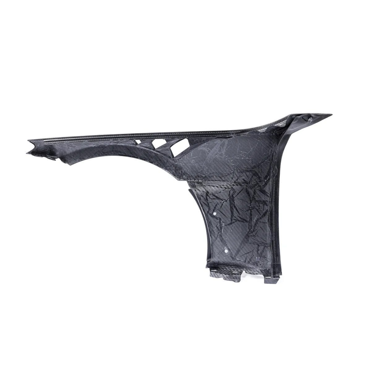 Similar to their previous generation fenders, Alpha-N’s G87 V4 carbon fender set incorporates the same fender louvers and aero blade elements as found on the new 992 GT3 RS. As air flows into the left and right coolers through the M2’s front bumper and into the wheel wells, it can escape via the front fender louvers and the blade openings near the doors. This significant air evacuation reduces pressure within the front fenders, enhancing downforce. To fully utilize the improved aerodynamics, Alpha-N’s Wheelhouse Adapters (vented fender liner inserts) must be installed. The fender set is constructed entirely from pre-preg carbon fiber in a classic 2×2 weave, making the Alpha-N G87 M2 Carbon Fender Set both lightweight and highly functional.