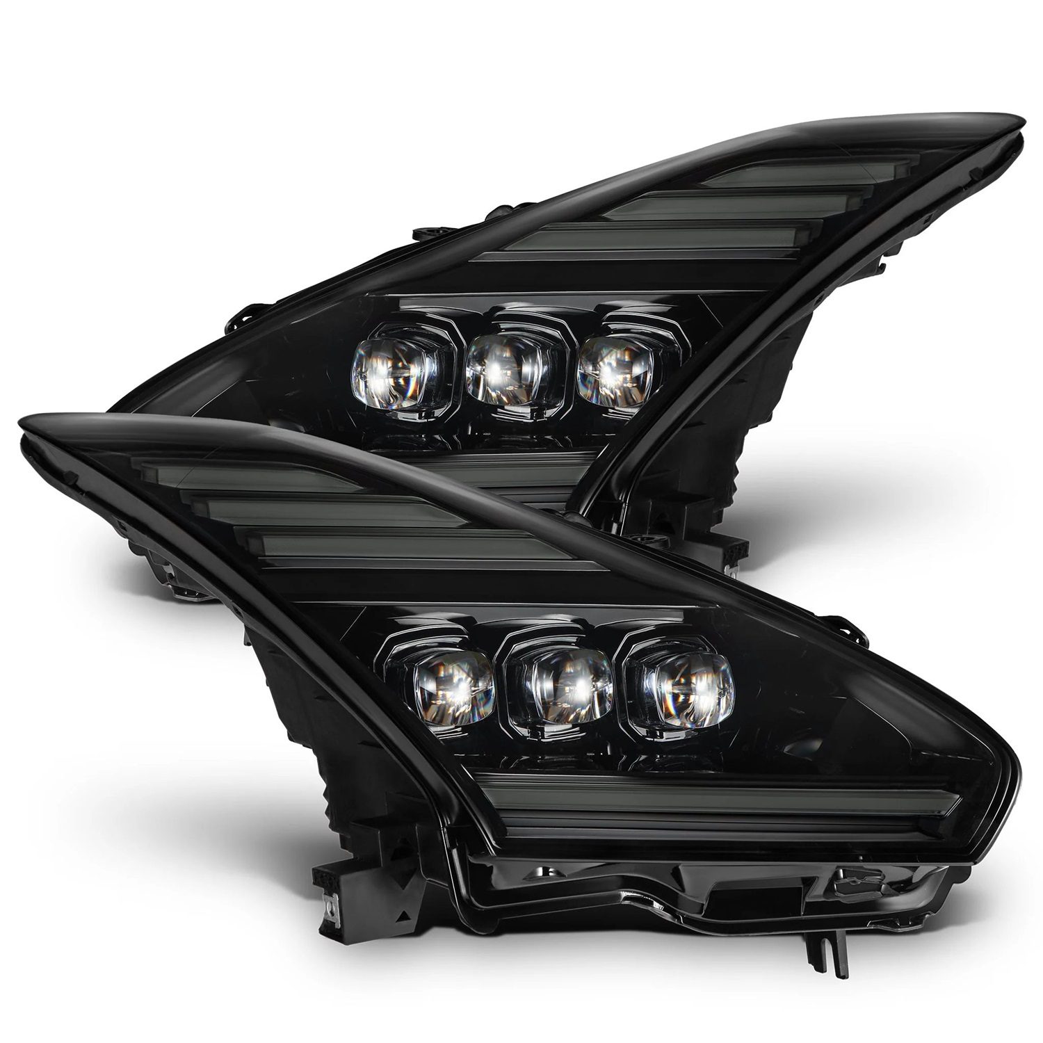 The Nissan GT-R has earned its reputation as a world-renowned sports car, with the R35 marking the final chapter of its iconic legacy. As one of the most legendary performance cars ever built, the GT-R R35 is set to become an enduring symbol. In designing the Nissan GT-R NOVA-Series projector headlights, AlphaRex drew inspiration from the Italdesign GT-R50 concept, incorporating its signature three upper and one lower DRL design, paired with three 3D ice-cube projectors at the center. This combination creates a more aggressive, modernized GT-R50-inspired appearance, perfectly complementing the bold and dynamic body lines of the GT-R. The DRLs offer a choice between white or amber illumination, providing customization options to suit individual preferences. Additionally, the top three LED tubes serve as sequential turn signals, adding a dynamic motion effect to the design. At the heart of these Nissan GT-R NOVA-Series projector headlights are AlphaRex’s signature 3D ice-cube NOVA projectors, delivering powerful, crisp illumination for exceptional brightness and clarity. Beyond aesthetics, the headlights feature an activation light function, initiating a captivating running light sequence when the vehicle is unlocked, further enhancing the visual impact. In terms of performance, all three projectors function as low beams, while the inner two projectors double as high beams, ensuring superior visibility under various driving conditions. Upgrading to the Nissan GT-R NOVA-Series projector headlights provides a perfect blend of advanced technology, striking aesthetics, and enhanced road presence. With these headlights, the Nissan GT-R R35 stands out with unmatched illumination and a design that honors the GT-R’s legendary heritage.