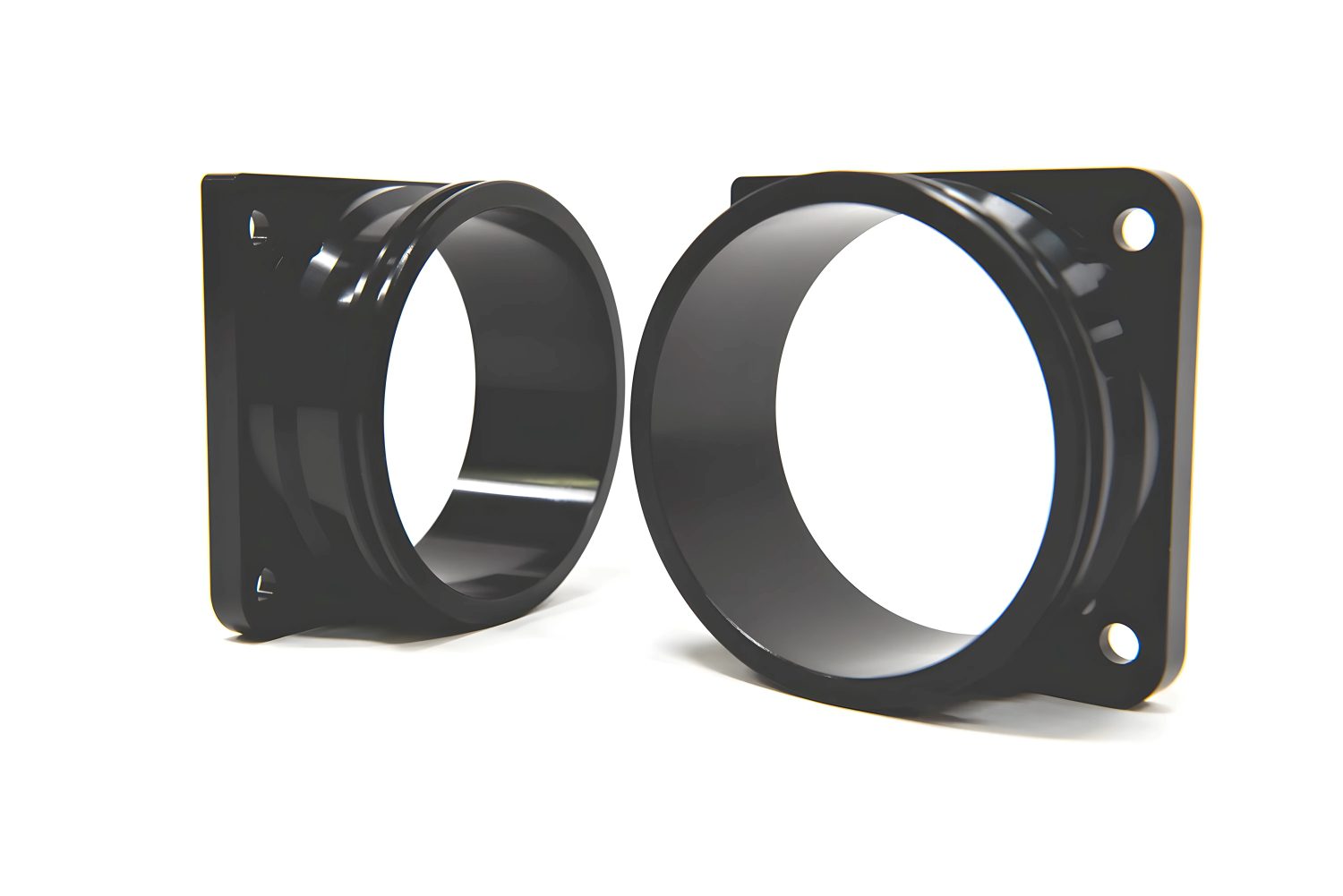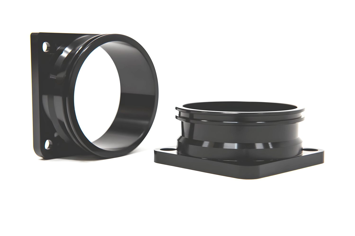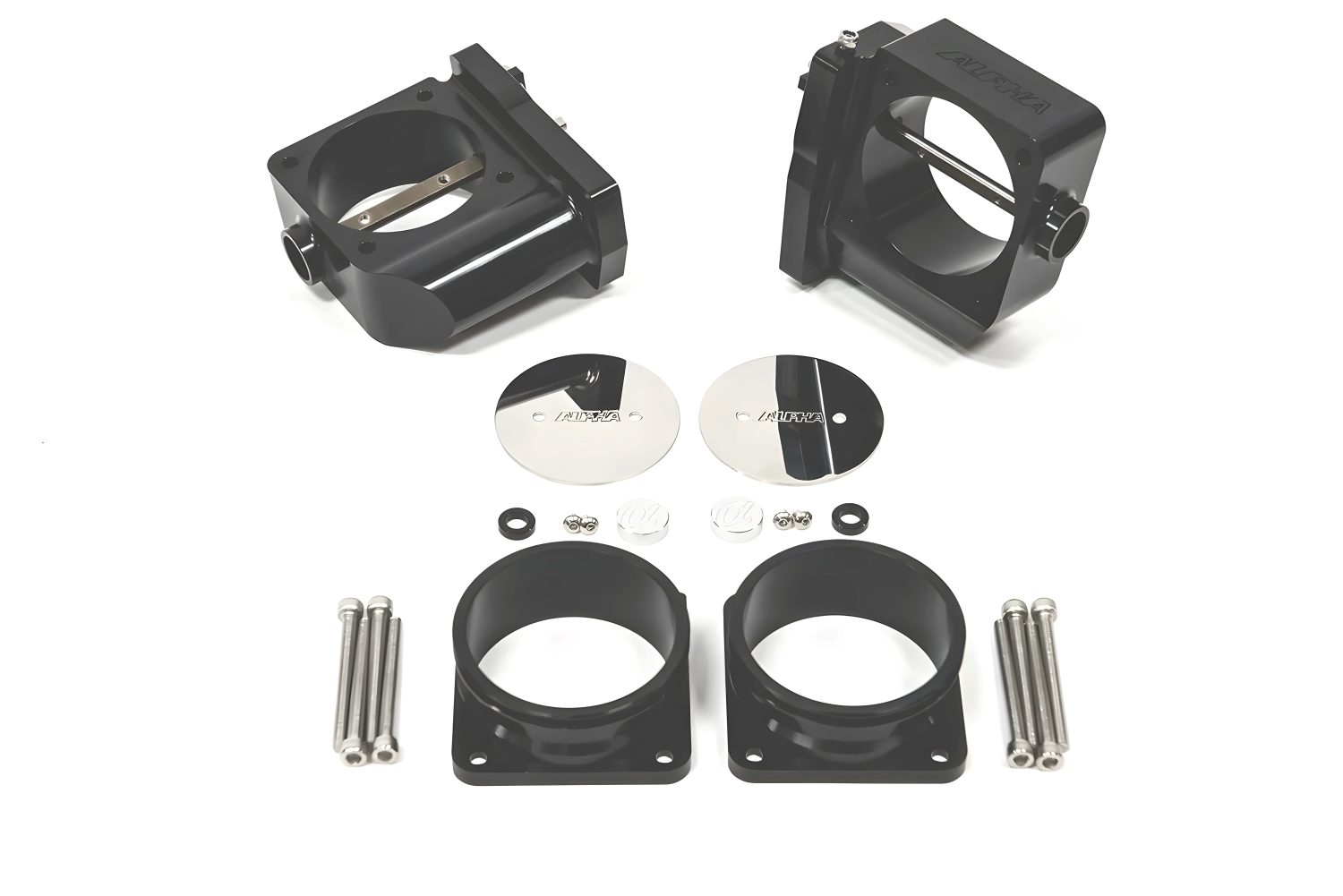 The AMS Performance Billet Big Bore Throttle Body Set with Vibrant HD Flanges for the R35 Nissan GT-R is engineered to improve airflow and throttle response in high-horsepower applications significantly. Precision-machined from billet aluminum, these throttle bodies offer increased bore size for enhanced intake flow, supporting greater power potential and sharper throttle control. Designed as a direct upgrade, they feature durable, vibrant HD flanges for secure, leak-free connections under extreme boost conditions. Ideal for serious performance builds, this throttle body set delivers the reliability and performance expected from the AMS Alpha product line.