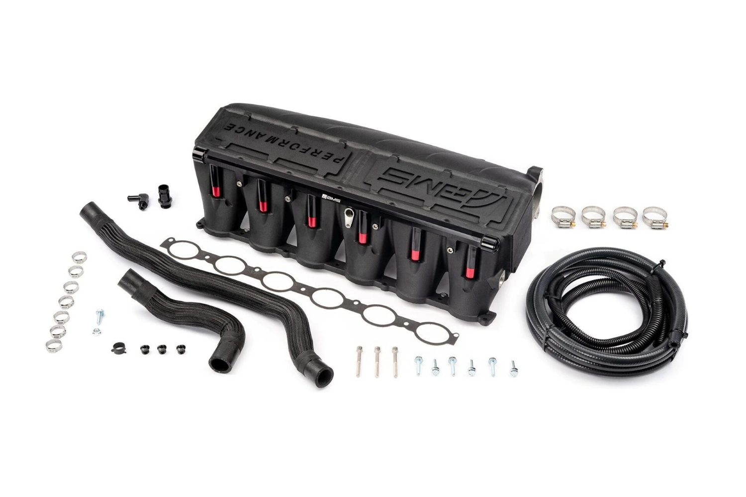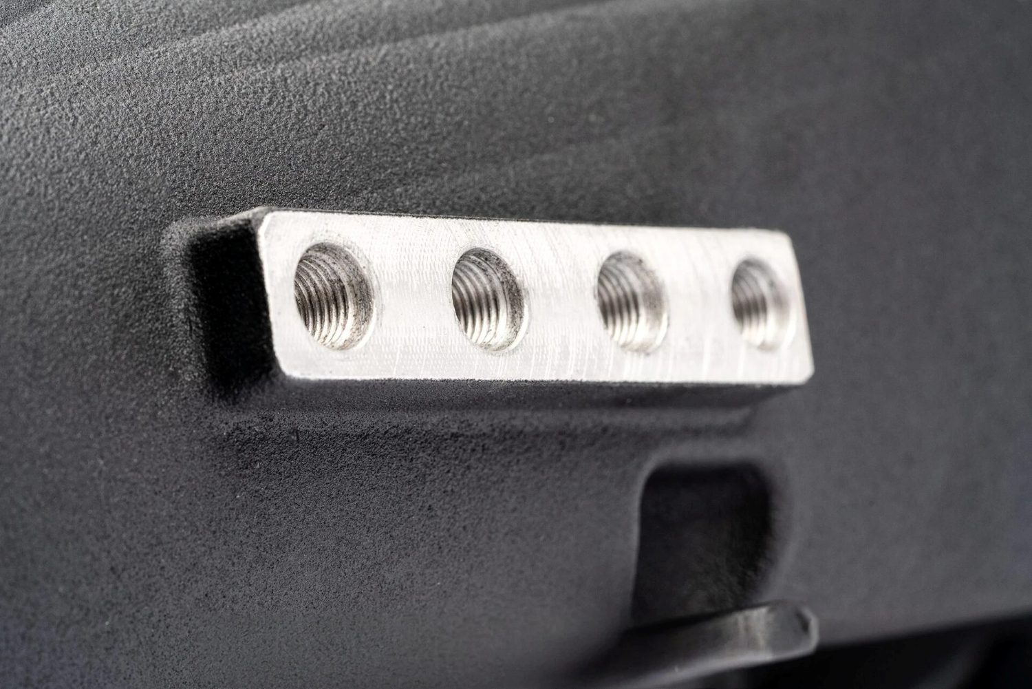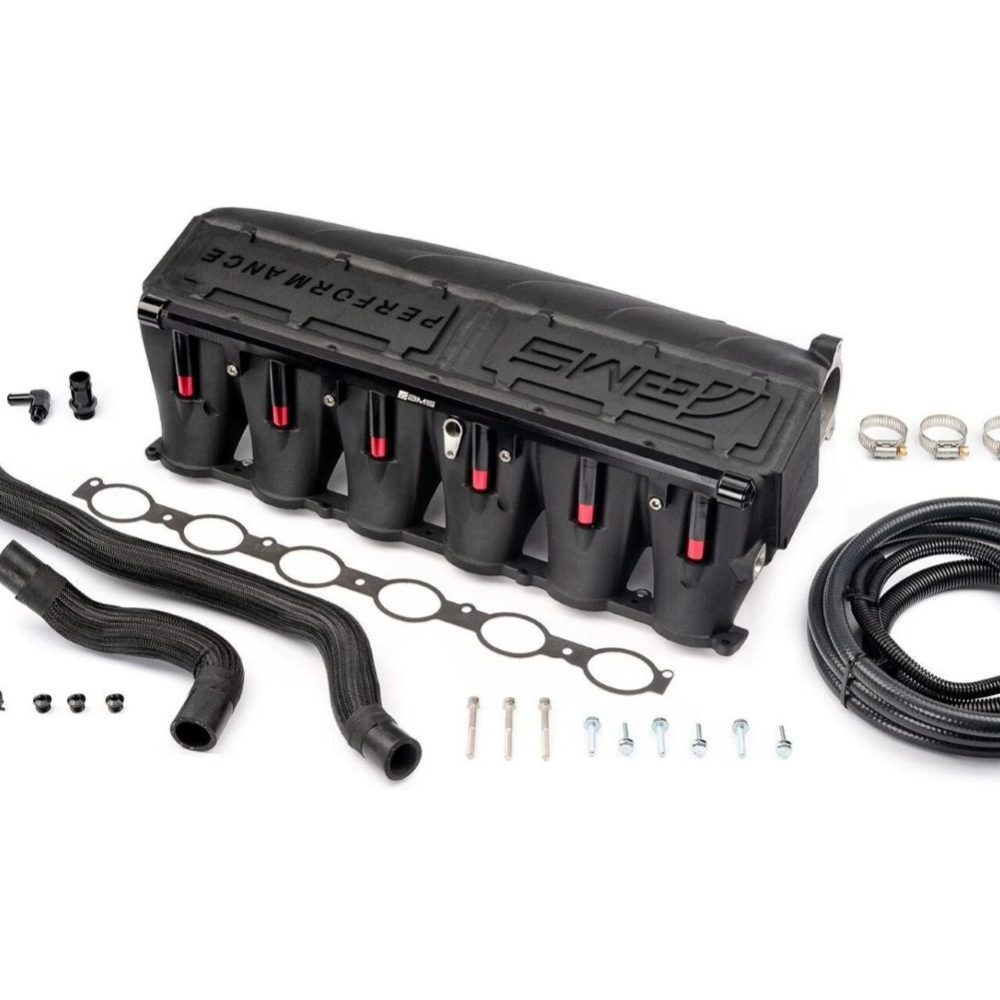 As power levels rise in the GR Supra, intake charge air temperatures also increase, making efficient heat dissipation essential. The AMS Performance 2020+ Toyota GR Supra Intake Manifold addresses this with a unique parallel twin core design that optimizes coolant flow for unmatched cooling performance. It also features a flush-mounted -8AN fuel rail for auxiliary port fuel injection, ensuring a direct, unobstructed path for atomized fuel to the combustion chamber. This advanced engineering delivers superior cooling, fueling, and overall performance, setting it apart from competing systems.