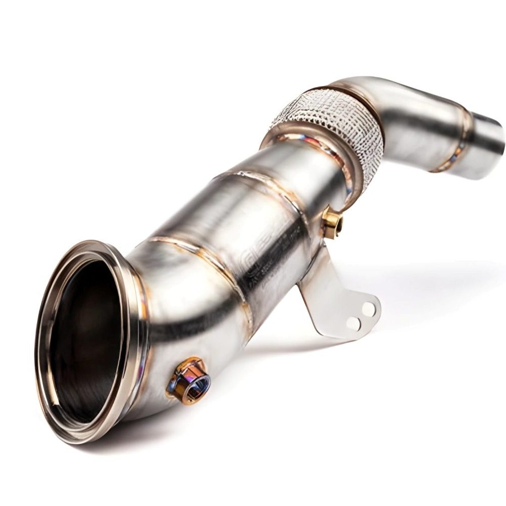 The 4.5″ full mandrel-bent downpipe stands out as one of the most durable and high-performing options available, delivering earlier power and significantly improving turbo spool. Its smooth, gradual bends help maintain exhaust gas velocity and minimize back pressure. Engineered with precision by AMS, this downpipe also incorporates a specially formulated catalyst substrate and wash designed to meet modern emissions standards, setting it apart from typical off-the-shelf solutions.