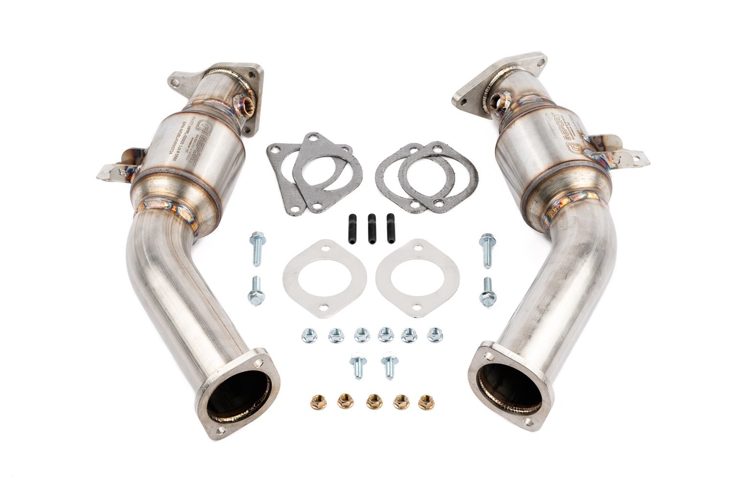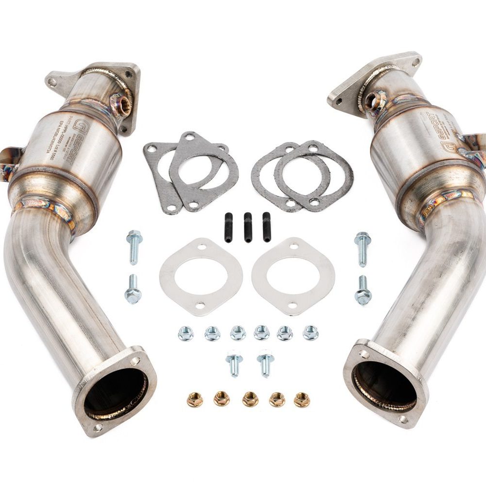 • The GESI G-Sport catalytic converters, integrated into the AMS Performance VR30DDTT Street Lower Downpipes, deliver outstanding performance and reliability. Constructed from 304 series stainless steel, these converters are EPA compliant, ensuring they meet stringent emissions standards while providing superior exhaust flow. Featuring a 300 CPSI cell count and a G-Sport triangle cell design, they effectively reduce back pressure, thereby maximizing performance. The Double-Lock technology securely holds the substrate in place, while the proprietary precious metal wash coat ensures consistent emissions reduction. Designed to withstand temperatures up to 1500°F, these catalytic converters are ideal for forced induction applications, offering the perfect balance of durability and efficiency within the exhaust system.
