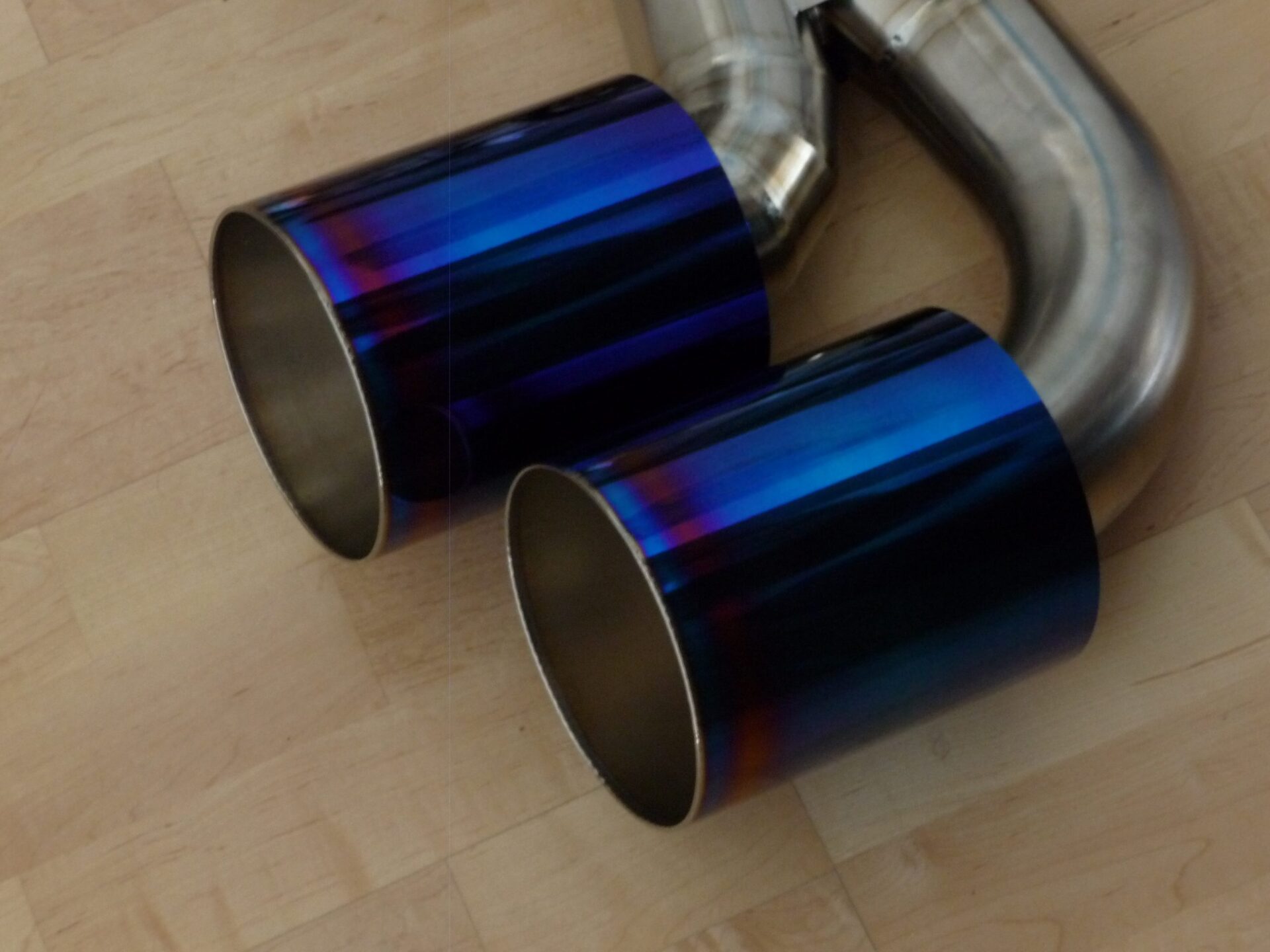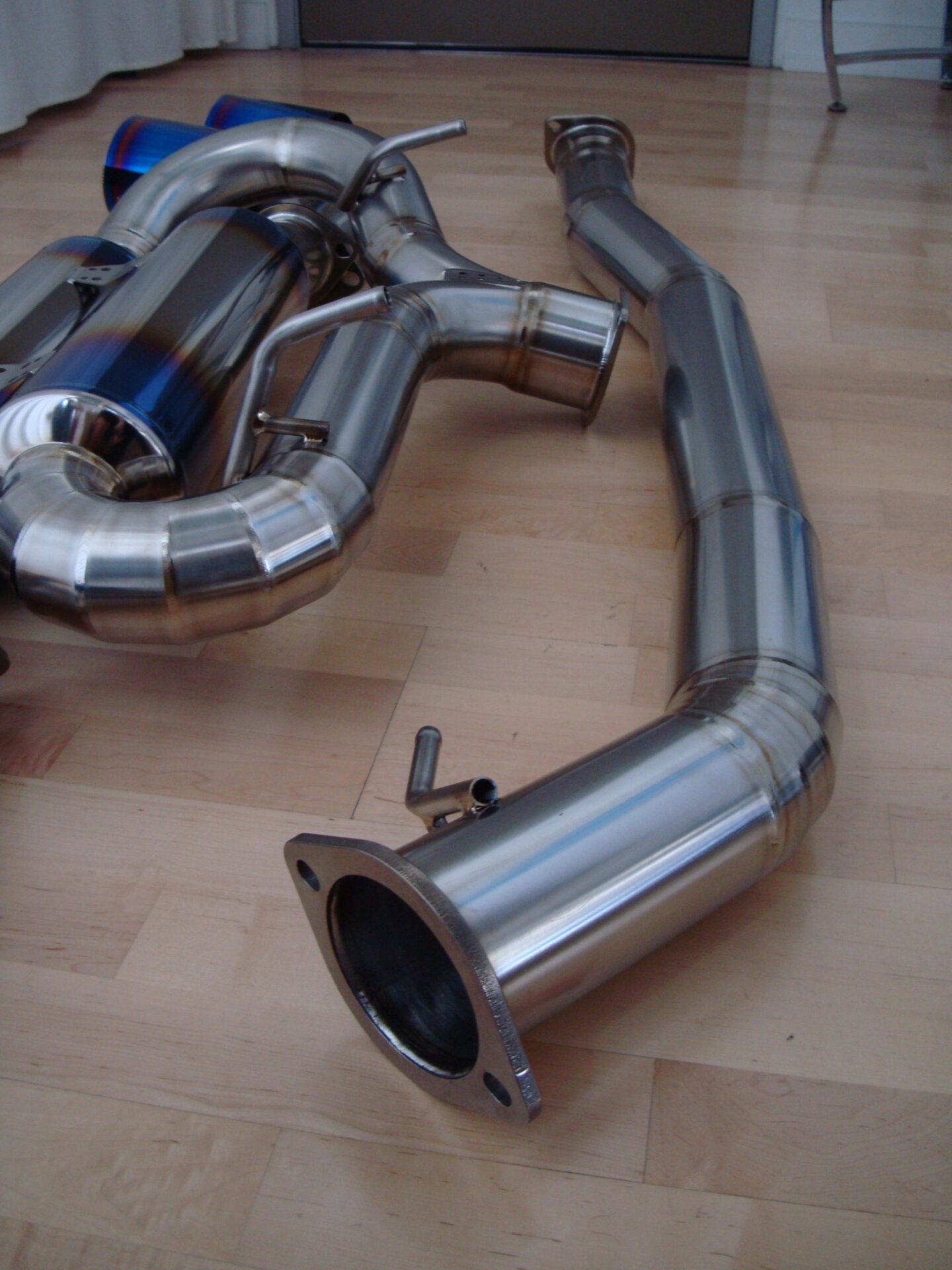 Amuse R1 Titan Extra STTI Titanium 90mm Exhaust System for the R35 Nissan GT-R features a semi burned titanium mufflers and quad tip outlets with your choice of half burn, full burn, or black finish as well as an option for Gold Ring re-finishing.