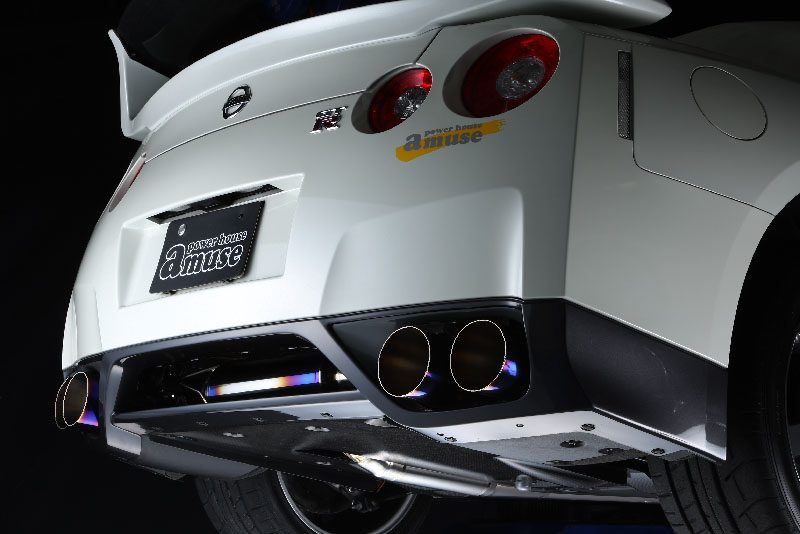 Amuse R1 Titan RS-Silent STTI Titanium Exhaust System for the R35 Nissan GT-R features titanium mufflers with additional sound dampening to maintain an exhaust note and volume similar to stock levels.