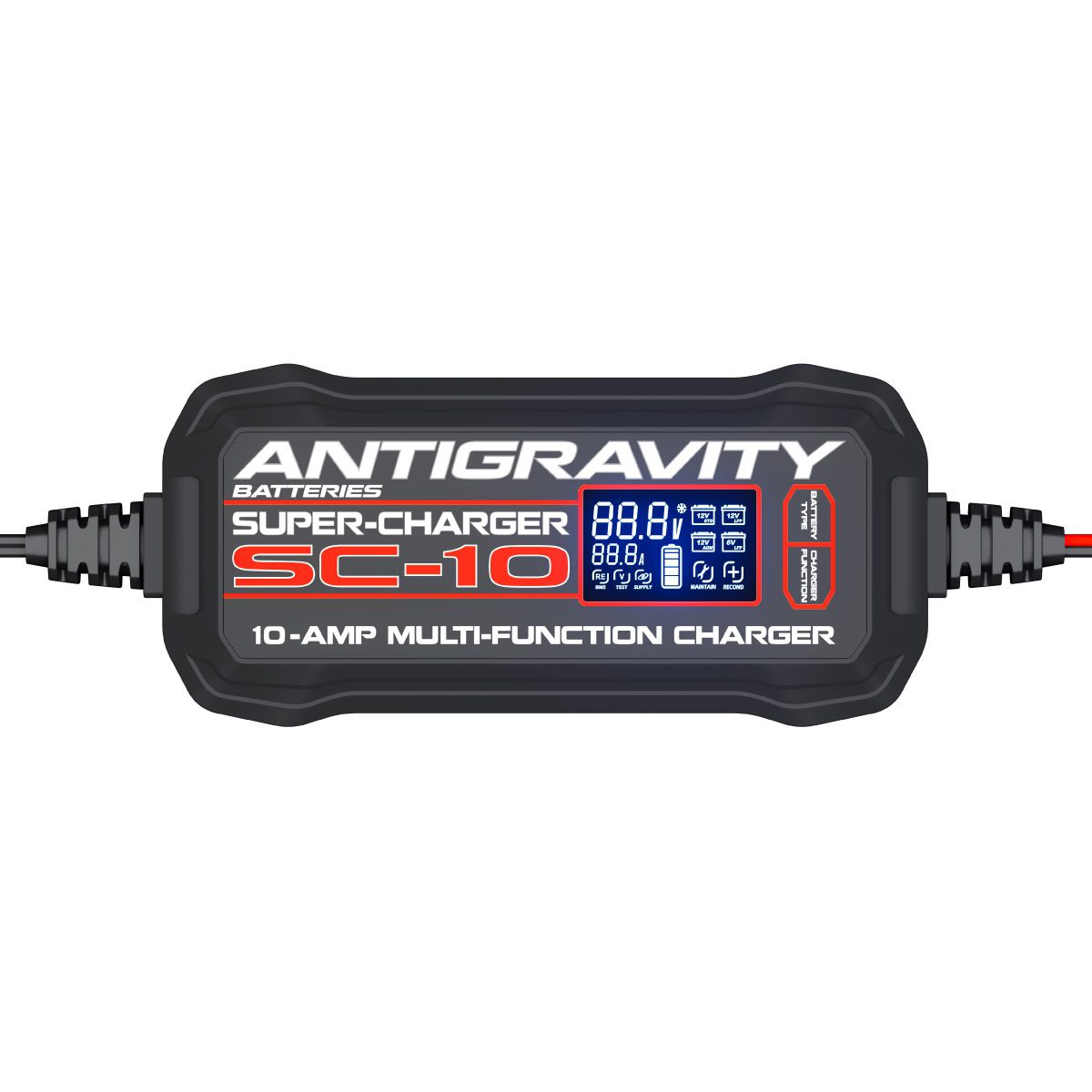 Antigravity Batteries introduces the next-generation SUPER-CHARGER, designed for automotive, motorcycle, and powersport batteries. The SC-10, a high-speed 10-amp model, efficiently charges lithium and lead-acid batteries from 10 to 200Ah. Equipped with advanced microchip technology, it features a large digital display showing real-time voltage, current, and capacity. It supports 6V and 12V lithium batteries, as well as all types of 12V lead-acid batteries. Additional functions include a power supply mode, an onboard voltage tester, a BMS wake-up function for lithium batteries in protection mode, a reconditioning feature for lead-acid batteries, and an automatic winter mode. Eliminating the need for extra tools like multimeters or external devices for battery swaps, the Antigravity Super-Charger is a versatile, all-in-one solution for battery maintenance and charging.