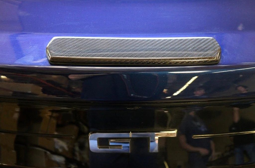 The Carbon Center Trunk Cover for the 2015-2023 Ford Mustang seals holes left by OEM spoiler removal, providing a clean, aerodynamic finish for aftermarket wing installations.