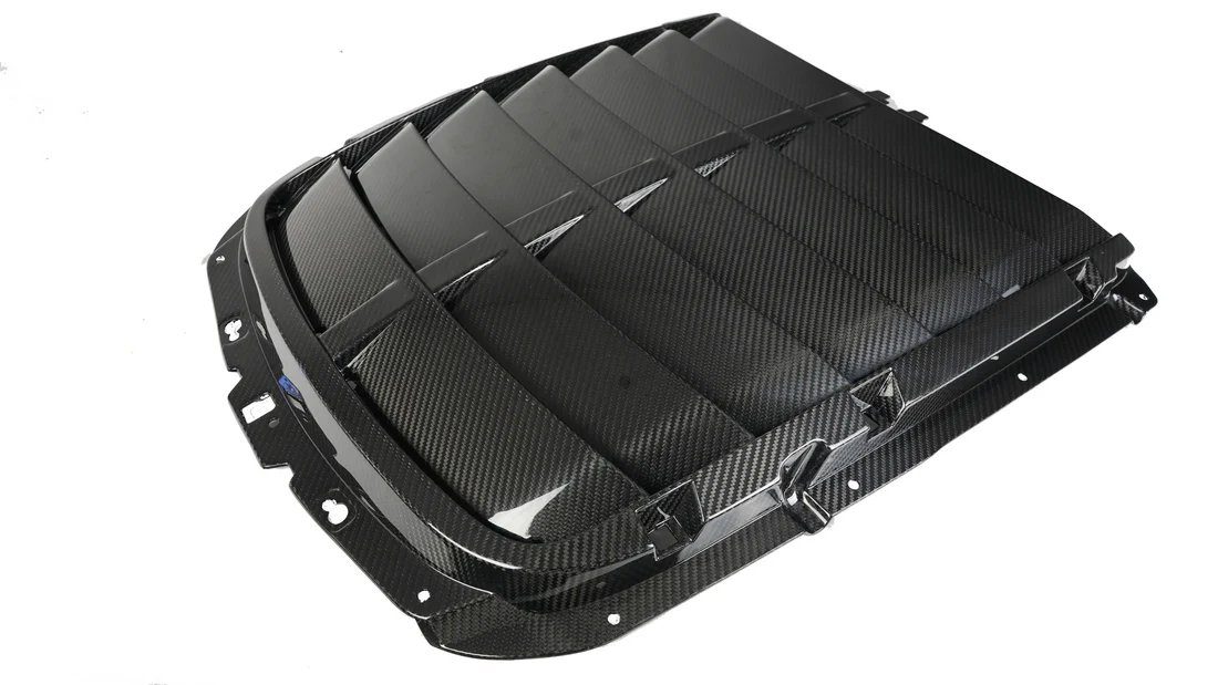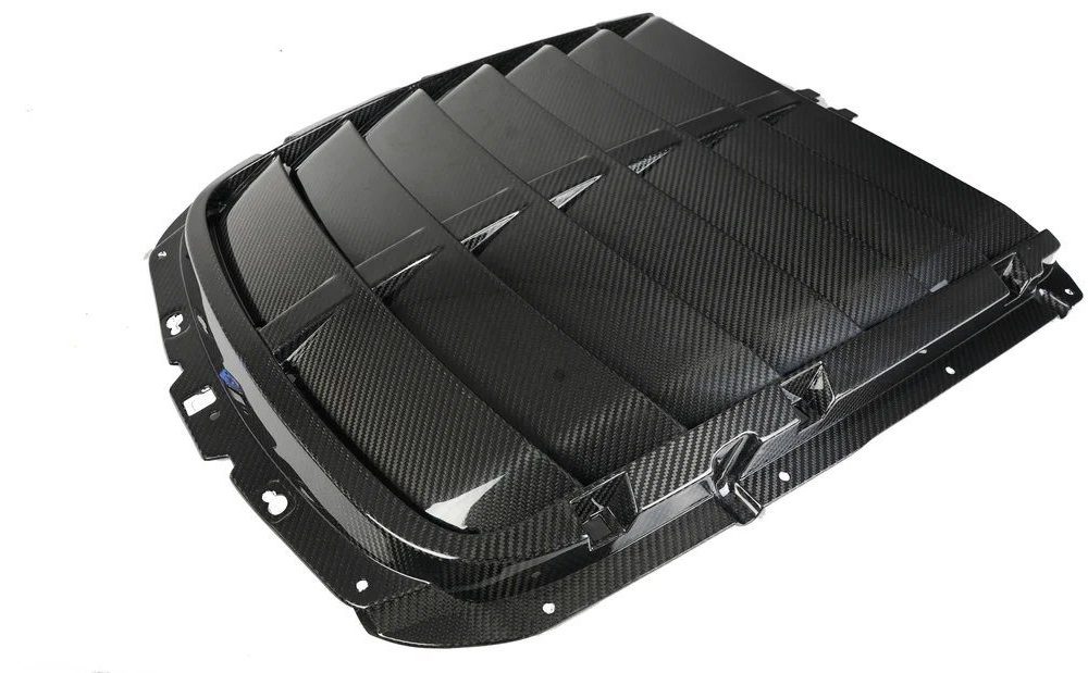 The APR Hood Vent for the Shelby GT500 enhances cooling by expelling excess heat from the engine bay, protecting critical components. Made from lightweight pre-preg carbon fiber reinforced polymer (CFRP), it improves performance while reducing weight.