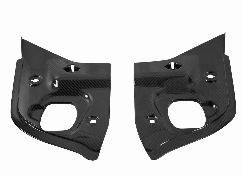 The APR Carbon Fiber Left & Right Radiator Cooling Shrouds for the 2020+ Toyota GR Supra are part of a three-piece set designed to enhance airflow and cooling efficiency. These lightweight carbon fiber shrouds direct air to the radiators, reducing heat buildup while adding a race-inspired look. With a fade-resistant epoxy coating and easy installation, they integrate seamlessly with factory components for both street and track use.
