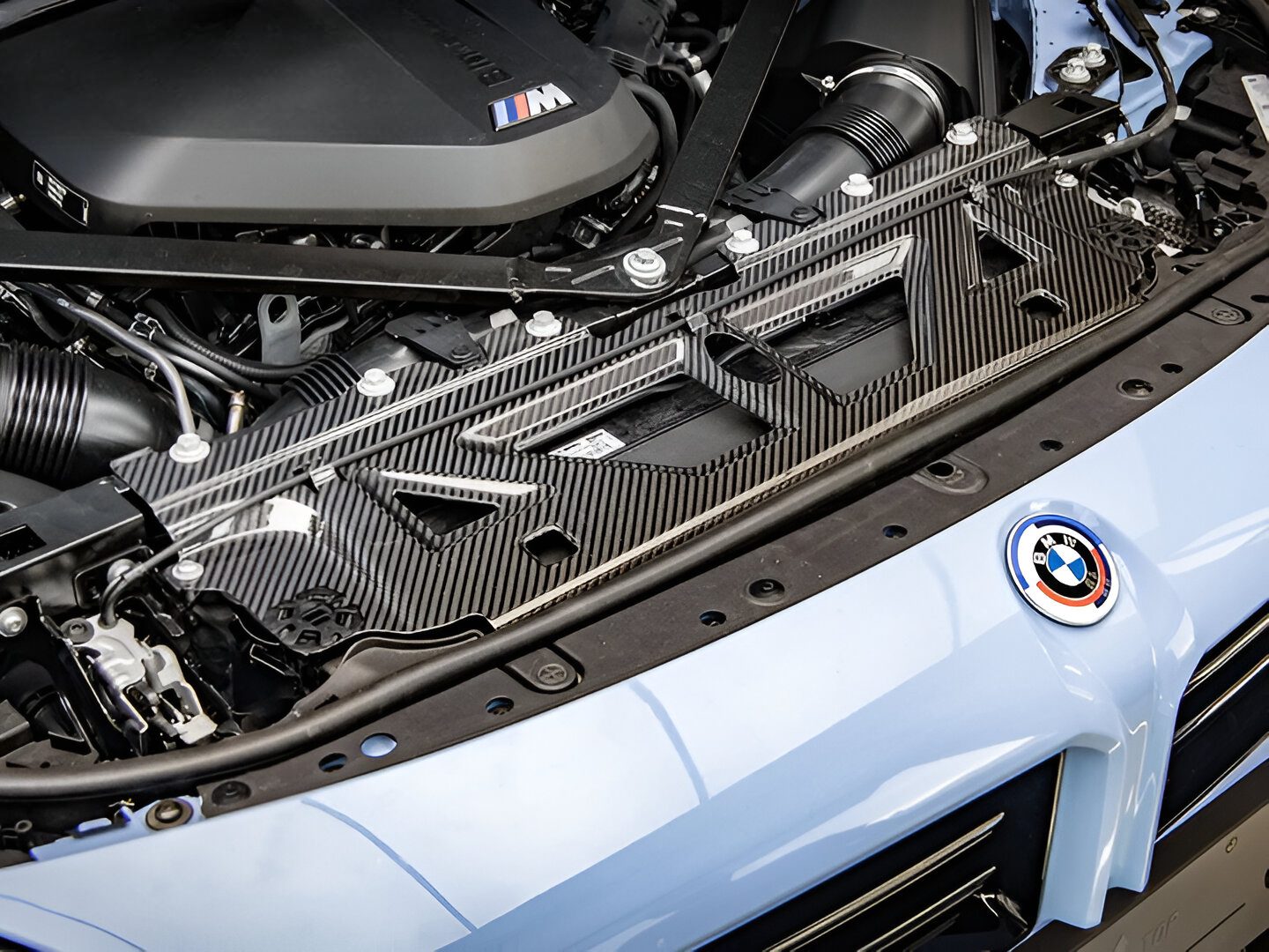 AutoTecknic elevates the G87 M2’s engine bay with its Dry Carbon Cooling Plate, blending style with performance. It adheres to OEM air induction standards, ensuring cooler air flow to the engine during high-speed driving. Customers report notable performance gains from this upgrade. Dry carbon, known for its quality and lightweight properties, is crafted through a precise autoclave process that minimizes waste and avoids air pockets, resulting in a flawless finish. This not only enhances functionality but also transforms the aesthetic appeal of the M2’s engine bay, striking a perfect balance between visual allure and enhanced performance.