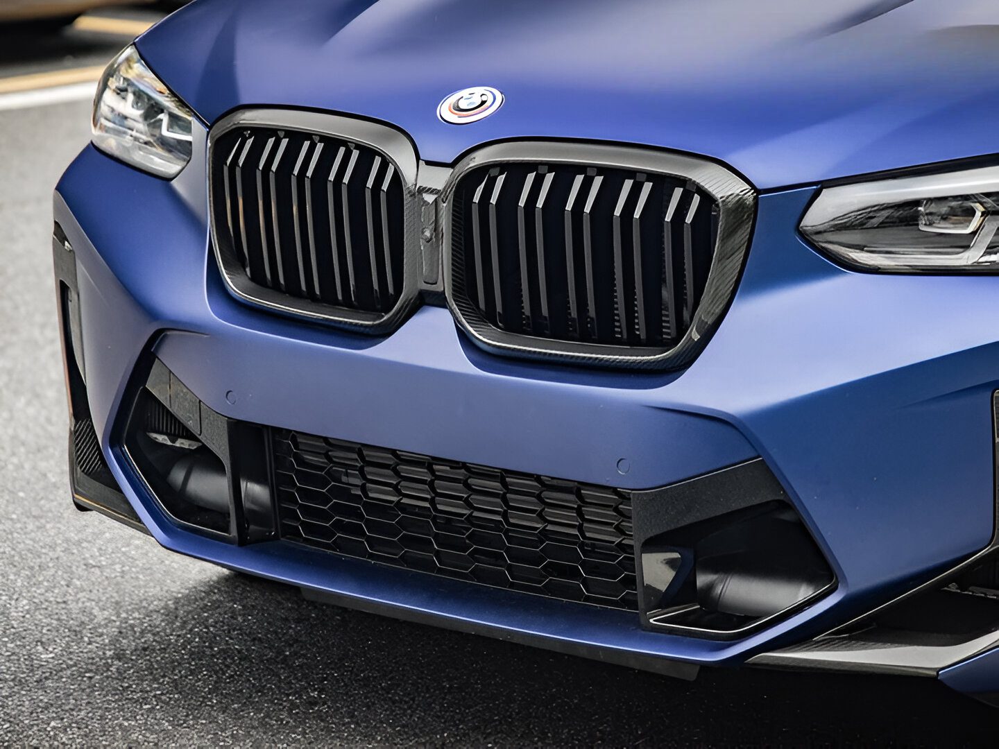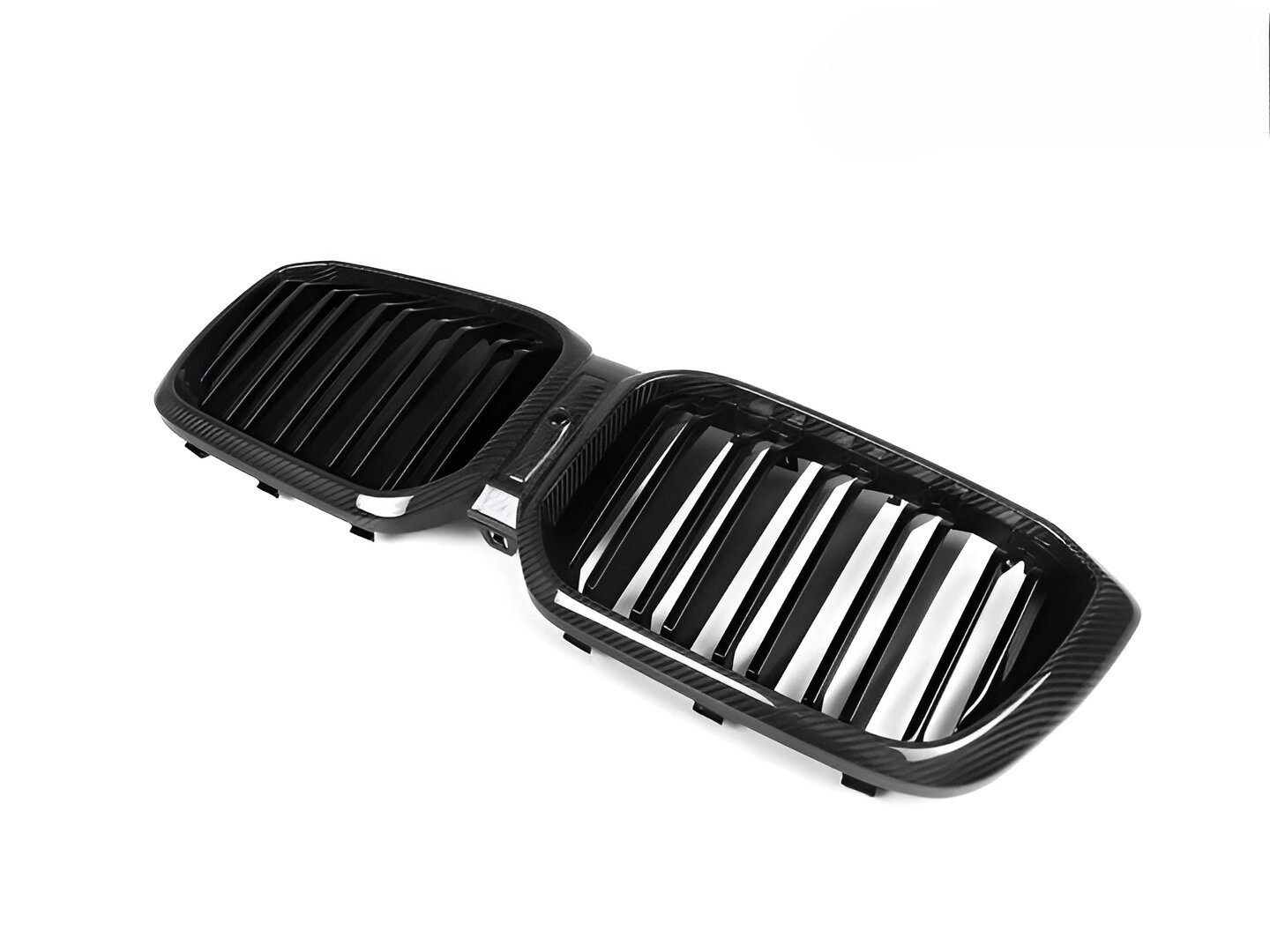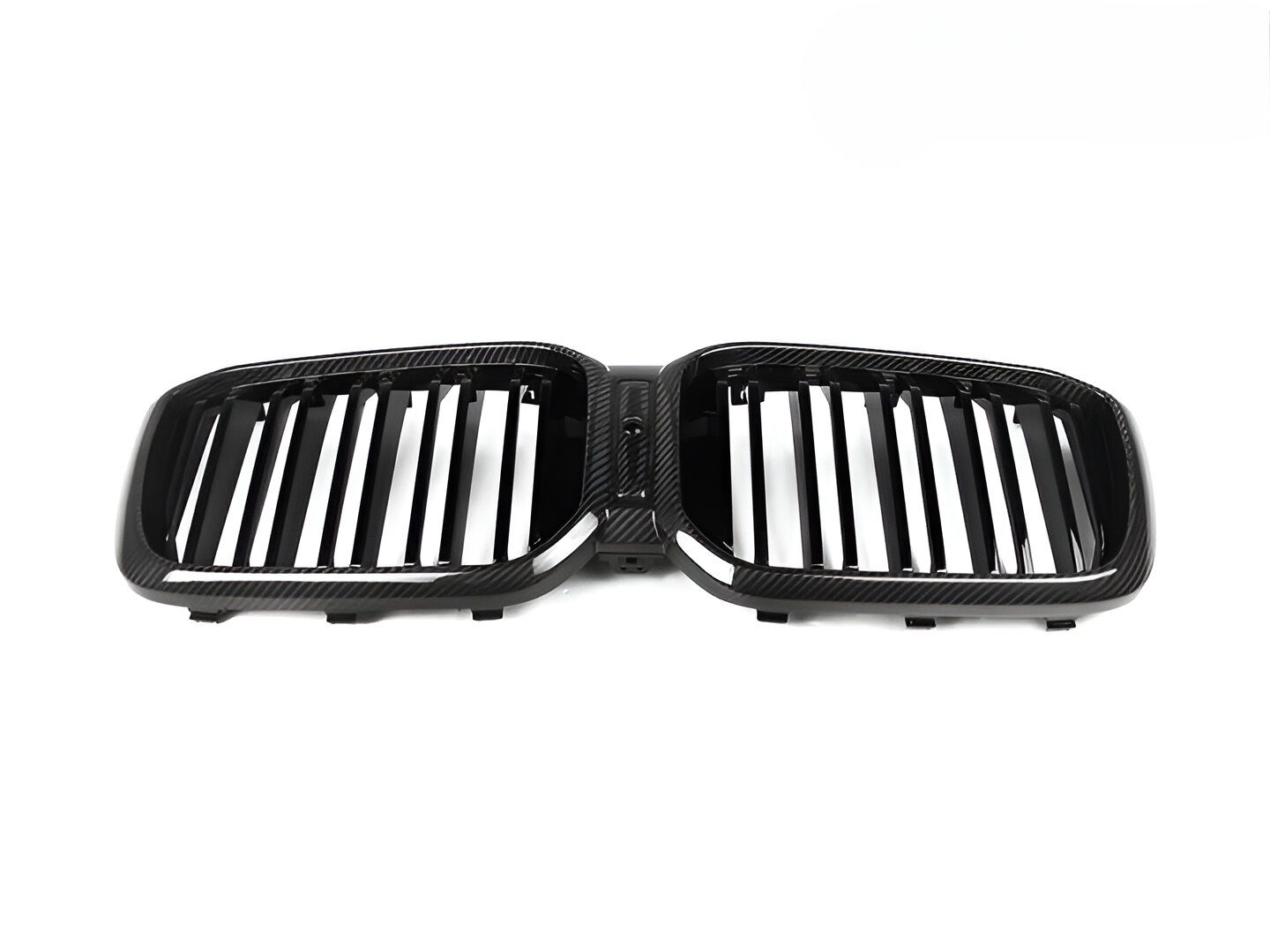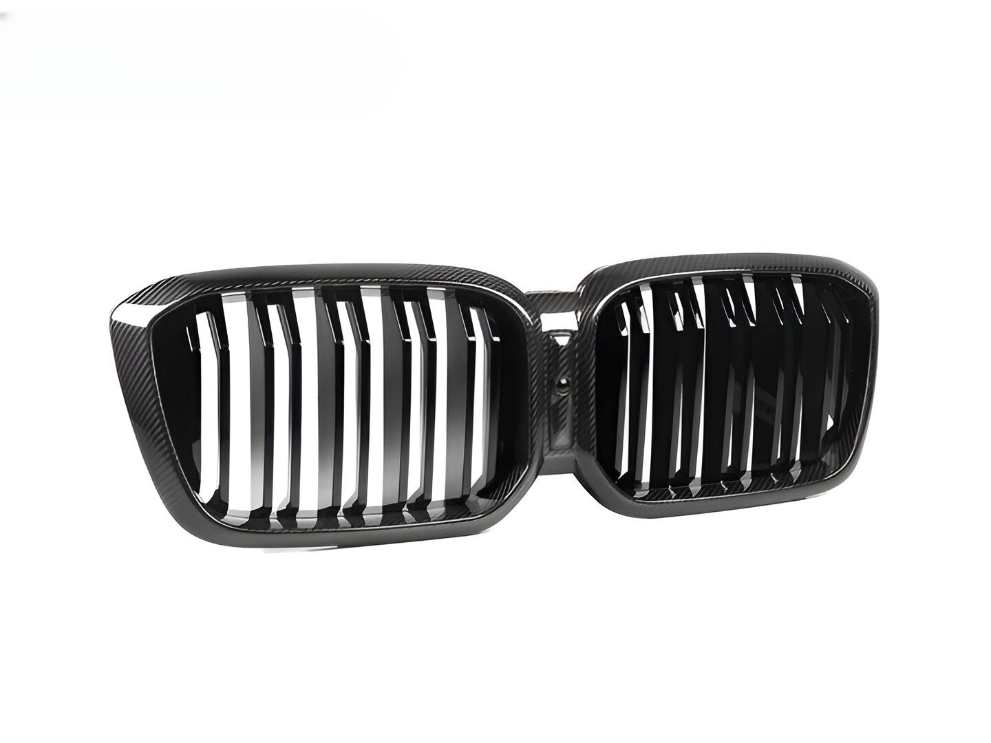 AutoTecknic offers a premium upgrade for the G01 X3 LCI or G02 X4 LCI with its Full Replacement Prestige Dry Carbon Front Grille, designed to seamlessly replace the OEM front grille. These grille surrounds are crafted to exceed OEM standards, engineered from 100% pre-preg carbon fiber for unparalleled quality and durability. The grille boasts a sleek high gloss black dual center slat for a flawless fit and enhanced aesthetic. Known for its superior quality, dry carbon is processed through a meticulous method that includes placing a carbon material into a mold and sealing it in a vacuum (autoclave) for optimal curing. This results in a lightweight, highly refined carbon product with minimal imperfections. AutoTecknic’s Full Replacement Dry Carbon Front Grille elevates the exterior of the X3 LCI or X4 LCI, showcasing a commitment to precision and sophistication.