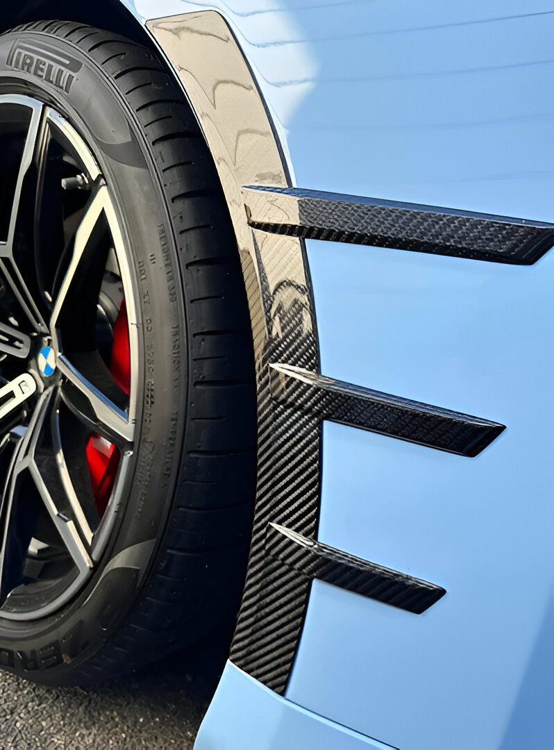 Each component is precisely engineered to enhance the unique attributes of the two-door model, allowing owners to fully realize their BMW G87 M2’s potential. Utilizing the esteemed pre-preg dry carbon manufacturing technique, AutoTecknic offers a premium collection of carbon fiber add-ons. These materials not only boost the car’s aerodynamic performance but also display the detailed fiber weave under a perfect clear coat finish, adding a sophisticated, race-inspired look. Among these offerings, the carbon fiber front and rear fender arch side spats stand out, designed for those desiring to accentuate their vehicle’s side profile. These additions push racing aesthetics to new heights, ensuring your presence on the road is both stylish and distinctive.