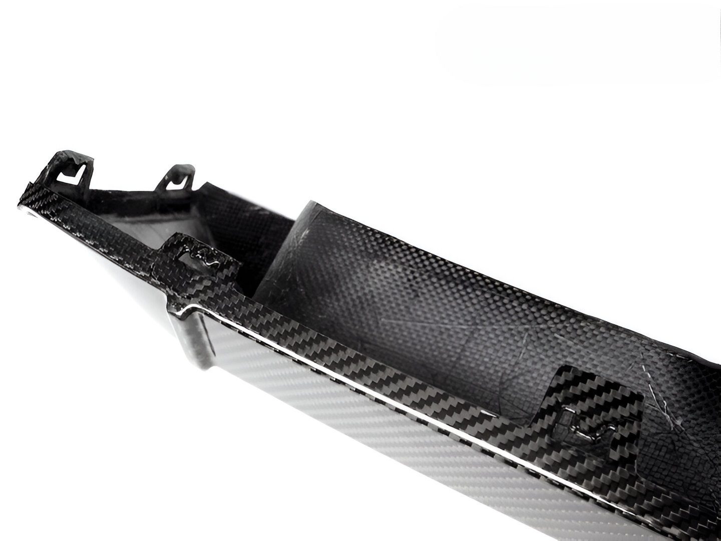 AutoTecknic introduces the newly released Motorsport Rear Diffuser for the G8X M3/M4, crafted from 100% genuine 3K Twill-Weave (2X2) Pre-Preg Carbon Fiber using signature autoclave technology. This diffuser is coated with multiple layers of high-gloss UV-resistant clear coat, ensuring durability and a sleek finish. Adhering to motorsport weight-saving principles, the autoclave vacuum forming process used in production enhances both strength and fitment. Designed for easy installation, the diffuser mounts directly onto the lower factory mounting location, facilitating a quick and seamless setup. The high-quality dry carbon fiber used in this product is formed through a meticulous “pre-preg” process, where carbon materials are impregnated, placed into a mold, and then cured in a sealed vacuum (autoclave). This process minimizes waste and produces a lighter version of carbon compared to the “wet” method, while also ensuring fewer pinholes and virtually no air pockets. The AutoTecknic Dry Carbon Performante Rear Diffuser features durable and precise mounting clips, embodying the ultimate in lightweight construction, high durability, and perfect fitment.