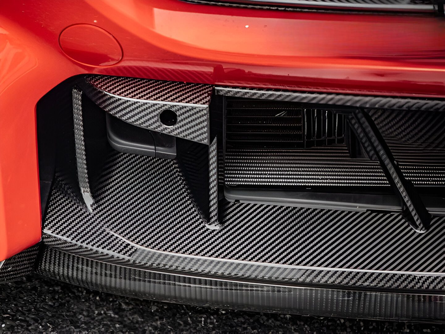 AutoTecknic elevates the front end of the G87 M2 with its exclusive dry carbon fiber OEM-Spec center bumper trim, introducing racing-inspired flair to this iconic model. They offer a dive into OEM+ aesthetics with pre-preg carbon fiber, seamlessly transforming the gloss black front facade of the G87 M2. AutoTecknic is well-versed in the nuances of the G87 M2’s exterior design, crafting a solution that not only enhances its visual appeal but also addresses design elements that might not resonate with everyone. Their dry carbon fiber is crafted with precision, undergoing a meticulous process that ensures minimal waste while delivering a lightweight and durable material. The sealed vacuum process, known as autoclave, ensures a flawless finish on the carbon fiber, free from imperfections such as air pockets. AutoTecknic’s refined elegance and race-inspired style are evident in their carbon fiber solutions, offering an upgrade that reflects the high standards synonymous with the BMW legacy. By choosing AutoTecknic, enthusiasts can embrace a distinctive look that sets their M2 apart from the rest.