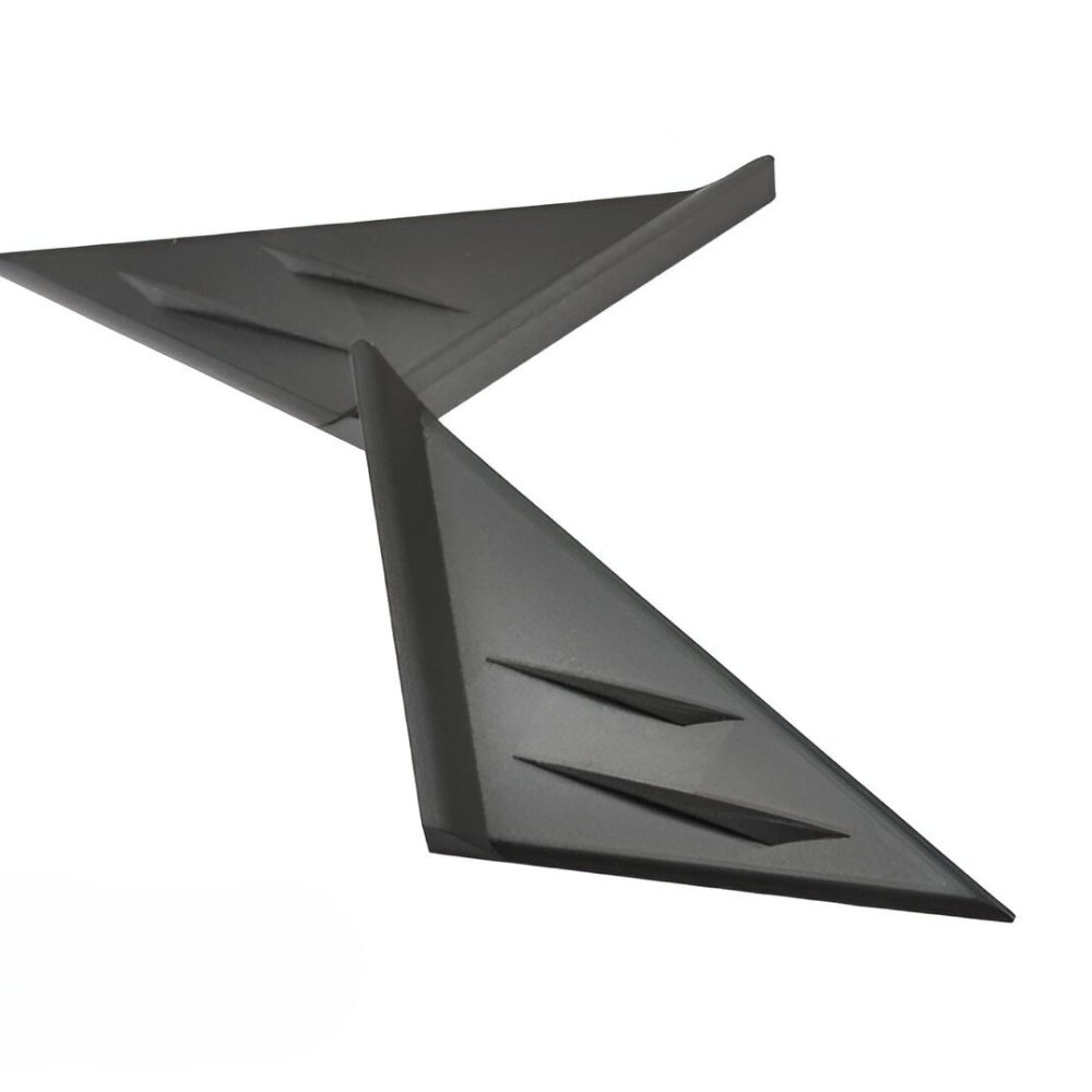 This product is a pair of AutoTecknic Version II side mirror wind deflectors for the A90 Supra, model years 2020 and later. These deflectors are engineered to reduce the excessive buffeting noise generated by the side mirrors when the vehicle is in motion. Constructed from a robust carbon-nylon composite, these deflectors are built for durability. Installation is straightforward and requires no screws or bolts; simply align the deflectors and attach them using the pre-applied double-sided tape.