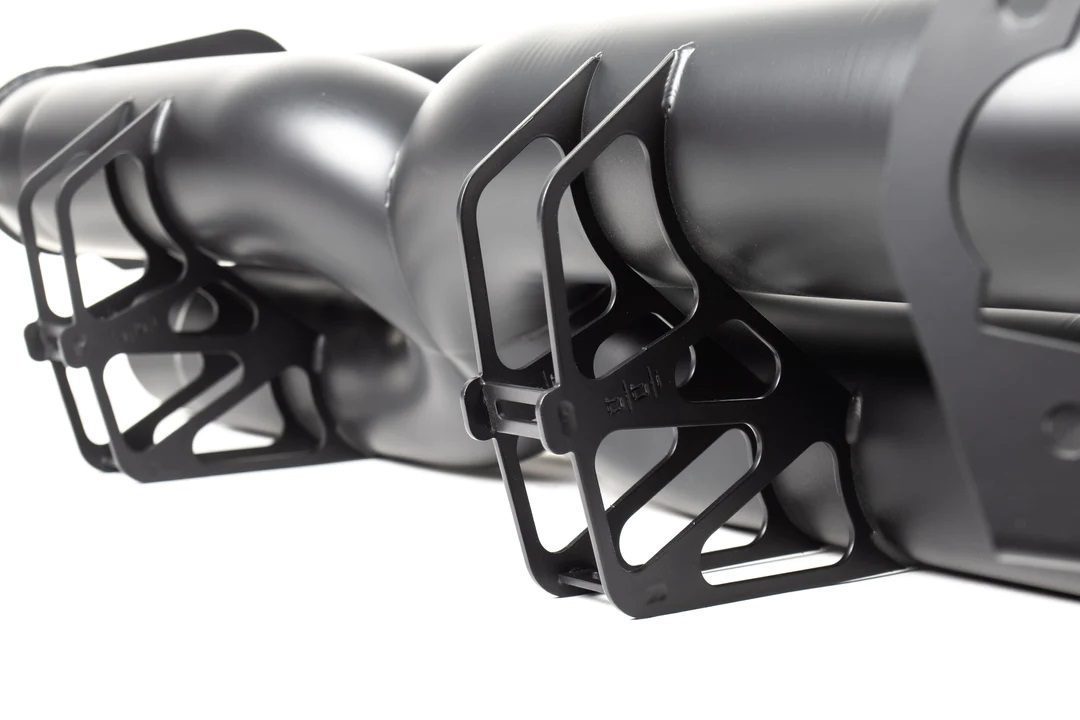 • The BBI Barcode Exhaust for the 992 Carrera features a high-flow crossover design that has been fine-tuned based on experience with previous generation Porsche turbo vehicles. It incorporates 76mm tubing to enhance flow and enrich the exhaust note. Equipped with valves and utilizing OEM actuators, the system retains the PSE exhaust function, allowing for quieter operation when activated. As a bolt-on, direct replacement for the OE muffler of 992 Carrera vehicles, it offers a fully reversible solution.