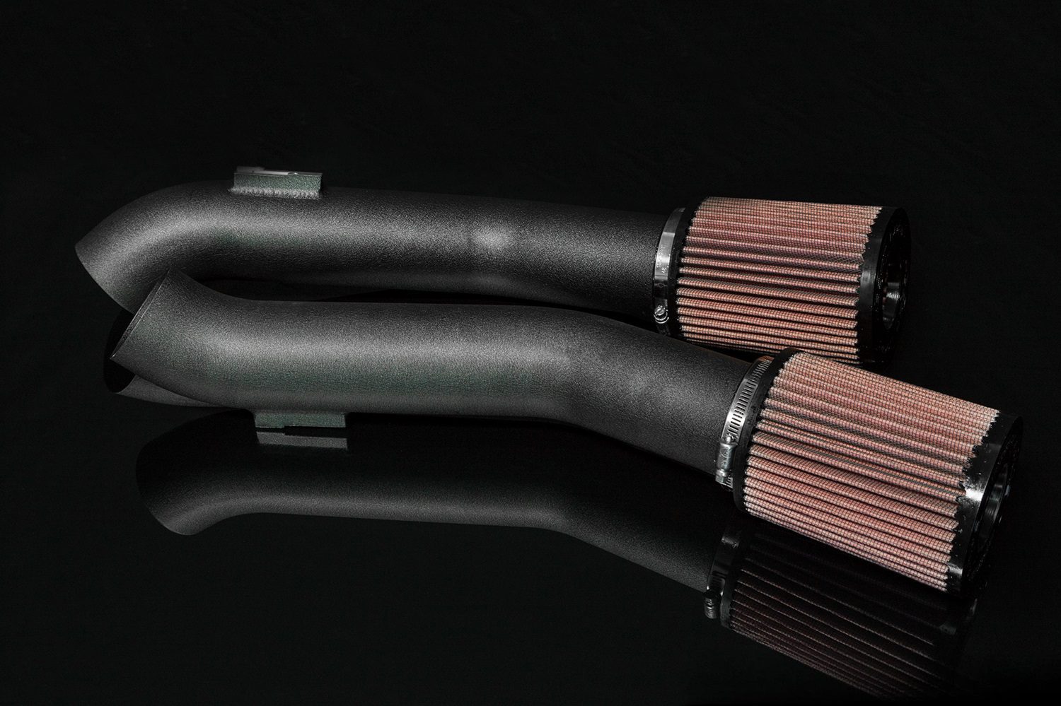 • The one-piece mandrel-bent tubes include MAF sensor provisions, expertly placed to avoid any tuning issues. The pipes are available in powder-coated wrinkle black, mirror-polished finish, or various custom powder coat colors for an additional charge. Boost Logic has updated all of their intakes to include higher flowing, larger, dual-cone air filters.