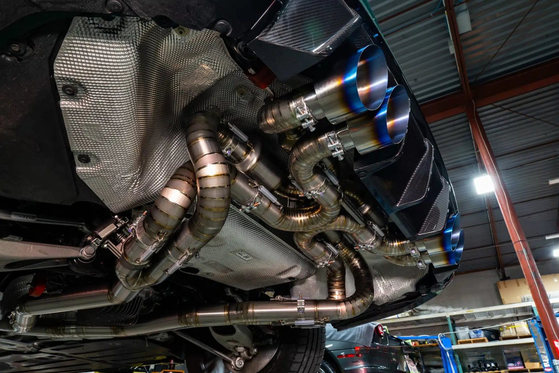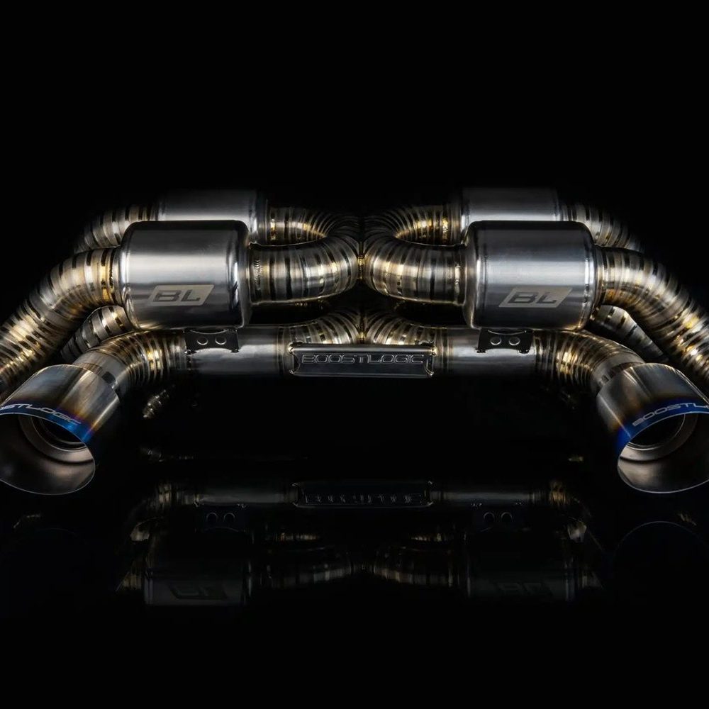 Boost Logic’s Formula Series Titanium Exhaust for the G8x BMW M3 / M4 is engineered for enthusiasts who demand uncompromising performance, refined sound, and world-class craftsmanship. This system features OEM electronic-controlled valves that, when closed, activate internal Helmholtz resonance chambers — delivering a drone-free, subdued tone during cruising and idle with a subtle exotic titanium pitch. Under wide open throttle, the system unleashes a dramatic transformation, producing a piercing, high-frequency exhaust note unlike anything typically heard from a BMW powerplant. Extensive frequency tuning and sound optimization by Boost Logic’s engineering team ensure the exhaust tone is precise and harmonically balanced. Unlike typical systems constructed with simple welded tubing, this exhaust is a carefully engineered solution designed to enhance both auditory experience and driving dynamics. Constructed entirely from premium-grade titanium, it offers exceptional durability while significantly reducing weight. The Formula Series Titanium Exhaust represents a perfect blend of performance, acoustic excellence, and lightweight design — making it the ideal upgrade for G80 and G82 M3 / M4 owners seeking a top-tier exhaust solution.