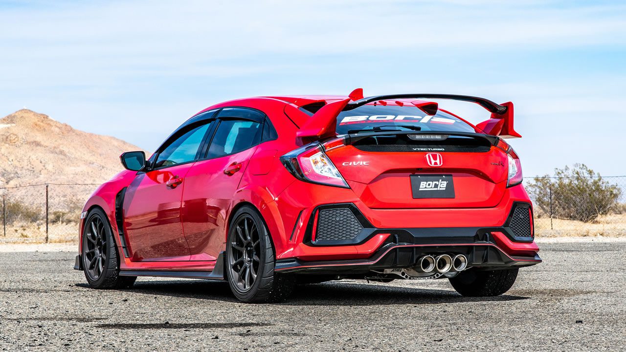 System features polished T-304 stainless steel tips. The BORLA® Cat-Back™ system for the Civic Type R is unique in the industry with an adjustable sound level. By changing the block off plates behind the center tip you can adjust the SPL (Sound Pressure Level) to your taste. System also features BORLA®’s Polyphonic Harmonizer Technology which utilizes patented units that contain pipes of different diameters and lengths to create multiple exhaust notes that harmonize to deliver a clean, rich, full-bodied sound to the BORLA® mufflers. The mufflers then enhance this sound to the character and volume appropriate for our Touring, S-Type and ATAK® systems.