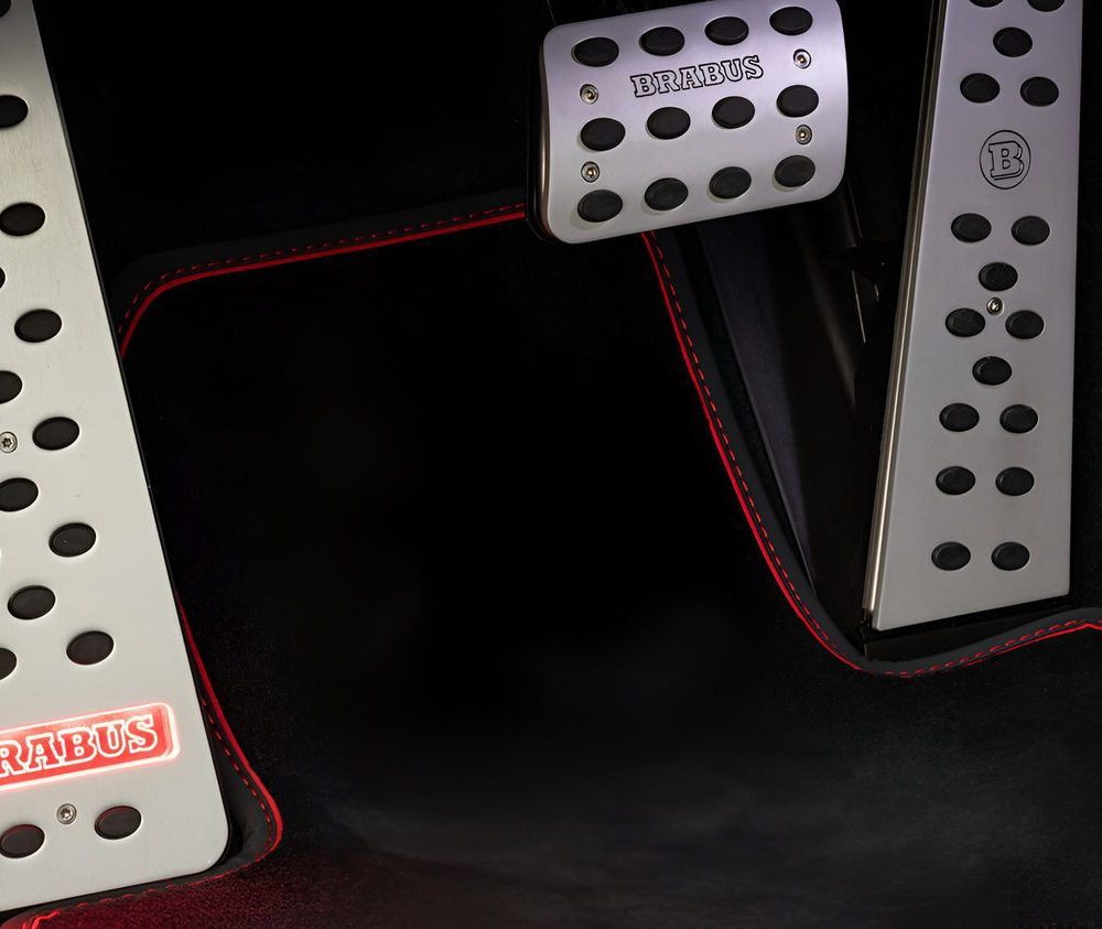 Classy BRABUS pedal pads made from matte anodized aluminum offer a sporty look and safe grip.