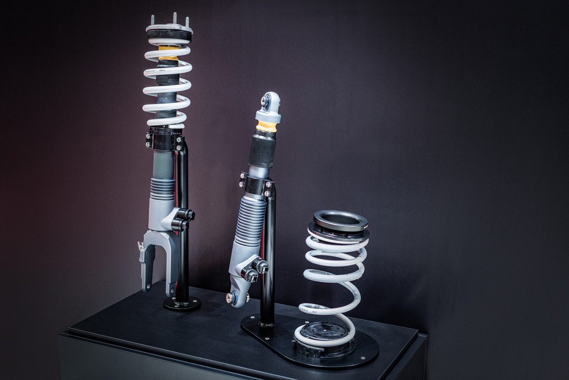 The blend of driving comfort, nimbleness, and a noticeable reduction in the vehicle’s height creates an unparalleled driving experience. Engineered from sturdy, solid components and threaded tubes that lower by up to 45 mm, it blends seamlessly with the DYNAMIC SELECT function. The RideControl suspension adapts flawlessly to any situation, ensuring superior performance at all times. The meticulous calibration of compression and rebound in high- and low-speed instances guarantees a driving experience that is both comfortable and engaging.