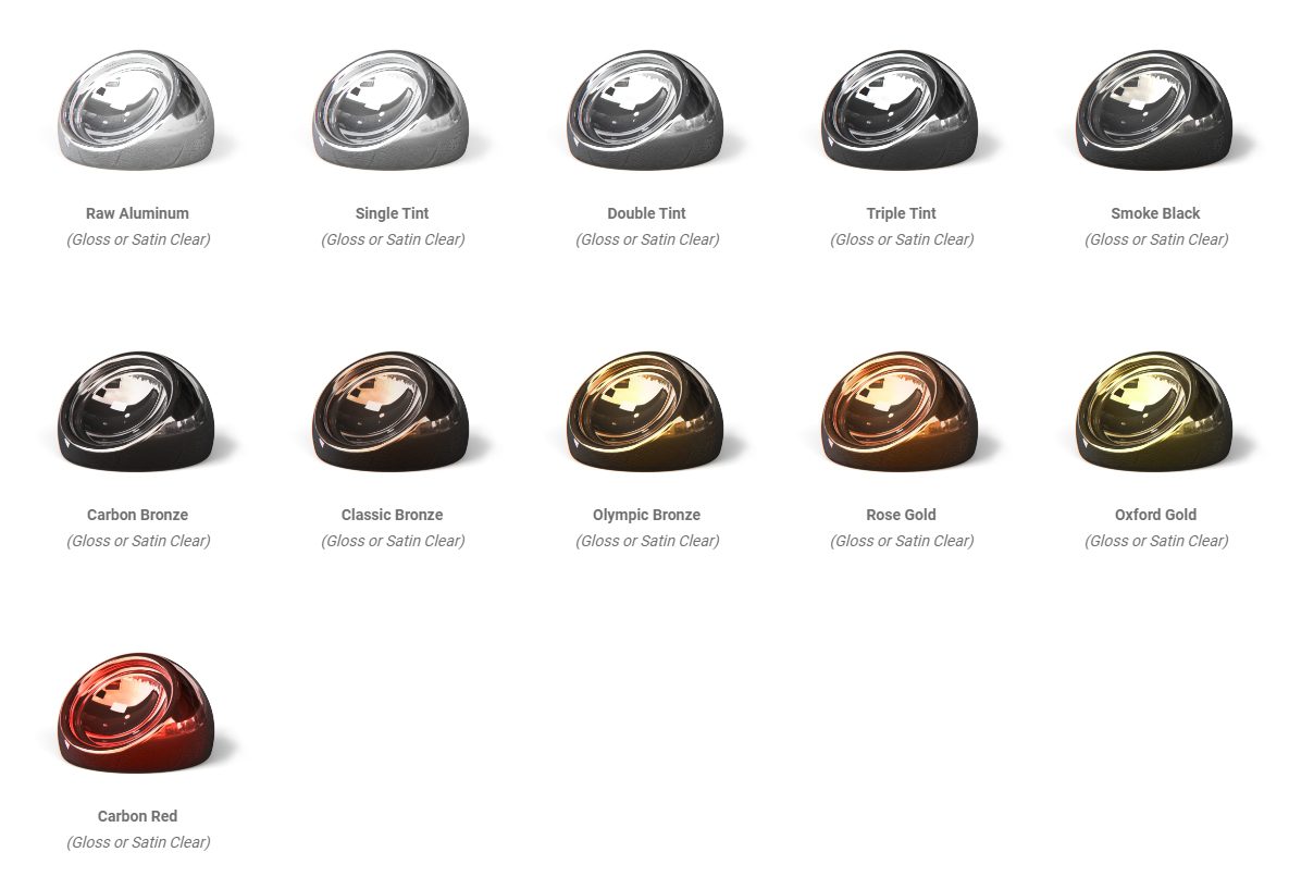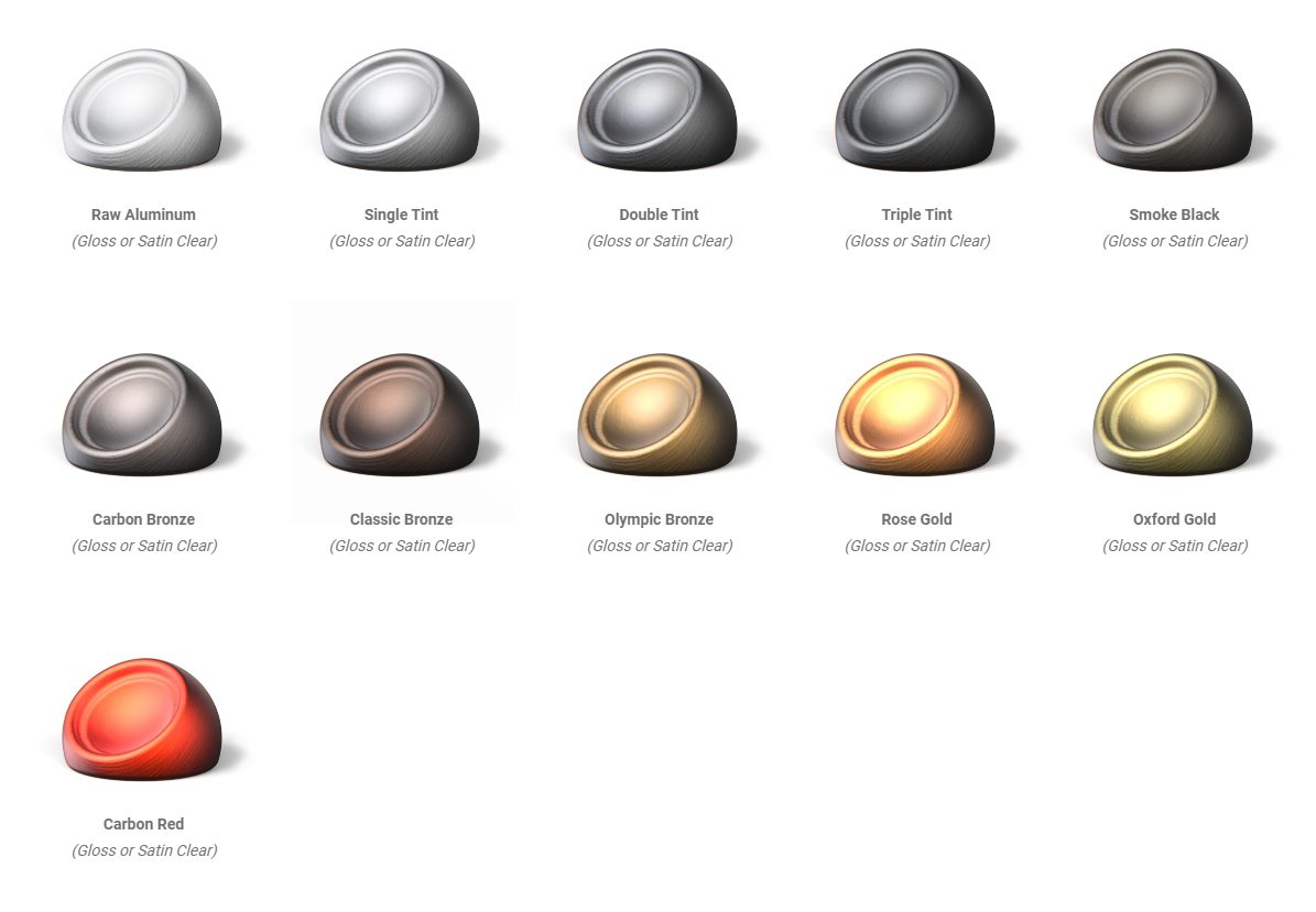 • Premium Colors: Transparent clear hues over brushed or polished aluminum.
