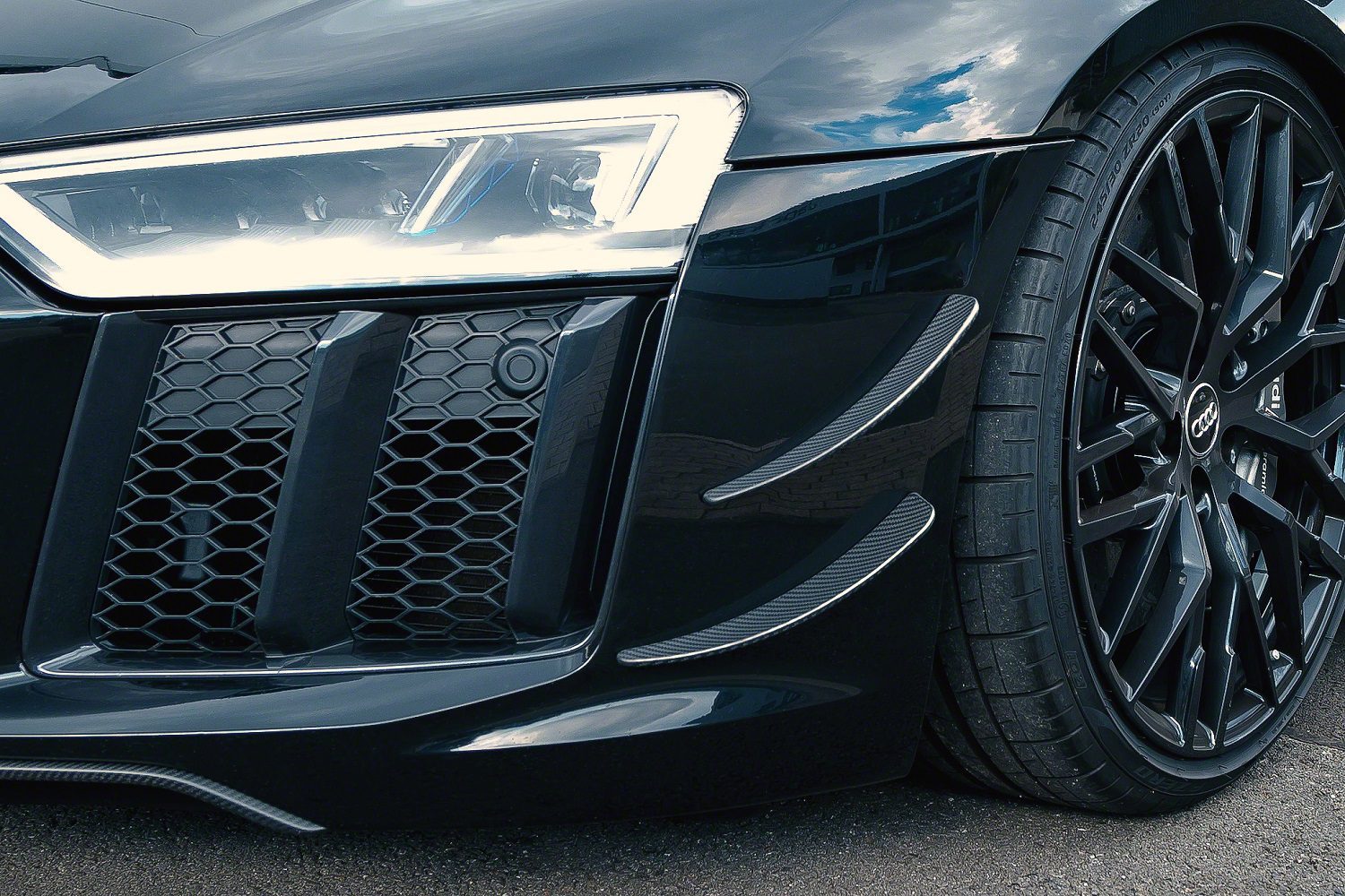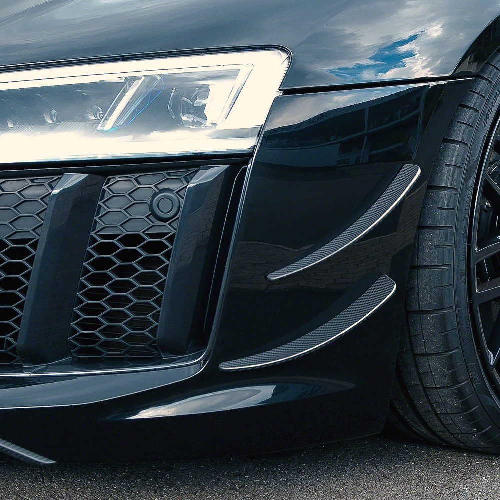 The Capristo Carbon Fiber Front Fins, specifically crafted for the Audi R8, not only provide a unique and distinctive touch that sets your car apart from others but also enhance its aerodynamic efficiency.