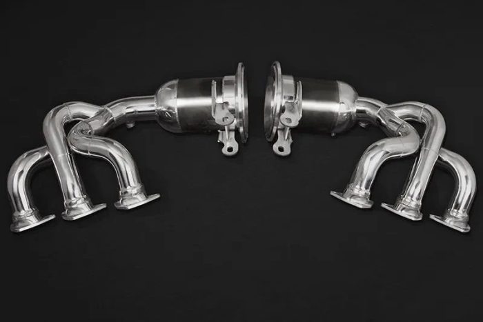 Engineered for the 992 Porsche 911 GT3 and GT3 RS, the Capristo Headers with Sport Cats replace the factory OPF (where equipped) with high-flow 250-cell catalysts to cut backpressure and free real performance — delivering gains of up to +14.7hp, crisper throttle response, and a richer, more engaging tone. A lightweight architecture and premium T309 stainless steel construction provide outstanding heat resistance and long-term durability, while precise fitment keeps installation clean and compatible with OEM sensors and mounts.