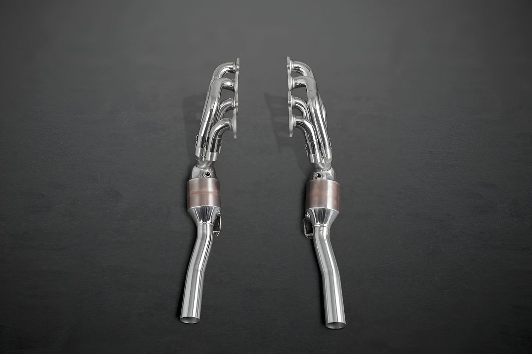 The Capristo Sports Cat Headers with Secondary Race Pipes for the W204 Mercedes-Benz C 63 AMG and C 63 AMG Black Series are engineered to unlock measurable gains in power and elevate exhaust character. High-flow 250-cell sport catalysts reduce backpressure compared to the factory setup, improving throttle response and mid-range pull. Paired with the secondary race pipes, the system further optimizes flow and sharpens the V8’s tone for a richer, more aggressive soundtrack—all with Capristo’s precise, vehicle-specific fitment.