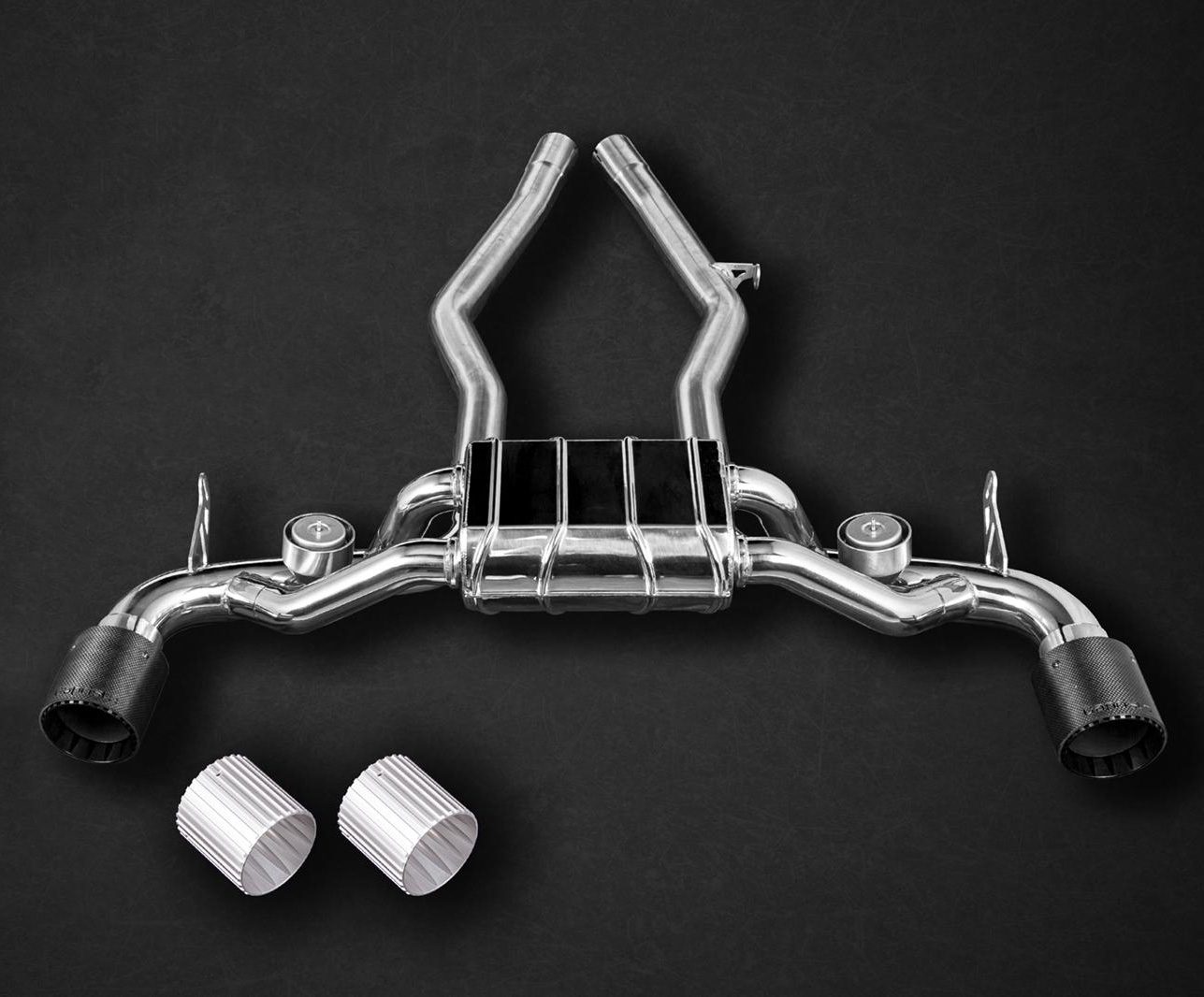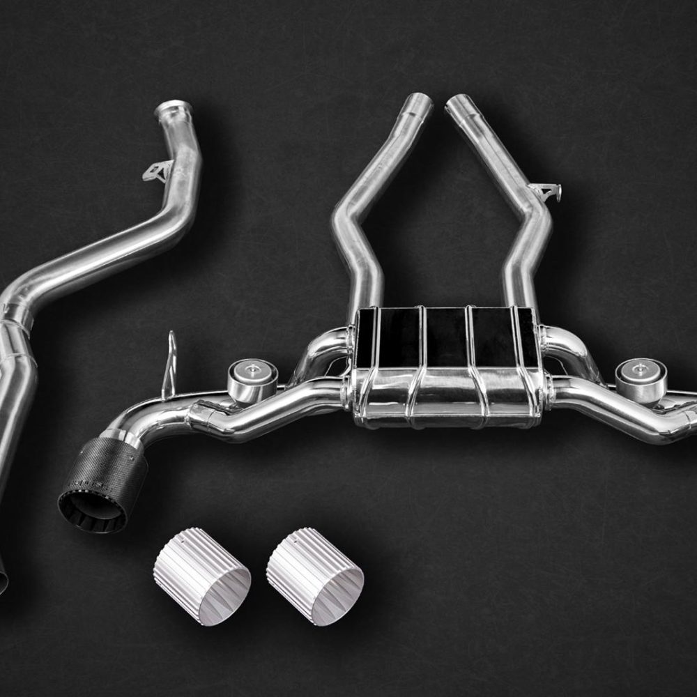 Built in Germany, the exhaust is crafted from high-grade T309 (1.4828) Stainless Steel using cutting-edge techniques, rivaling the features of F1-used Inconel. Enhancing the system’s aesthetics are Carbon Fiber Exhaust Tips with jet engine-inspired aluminum alloy interiors, available in Red, Black, or Silver.